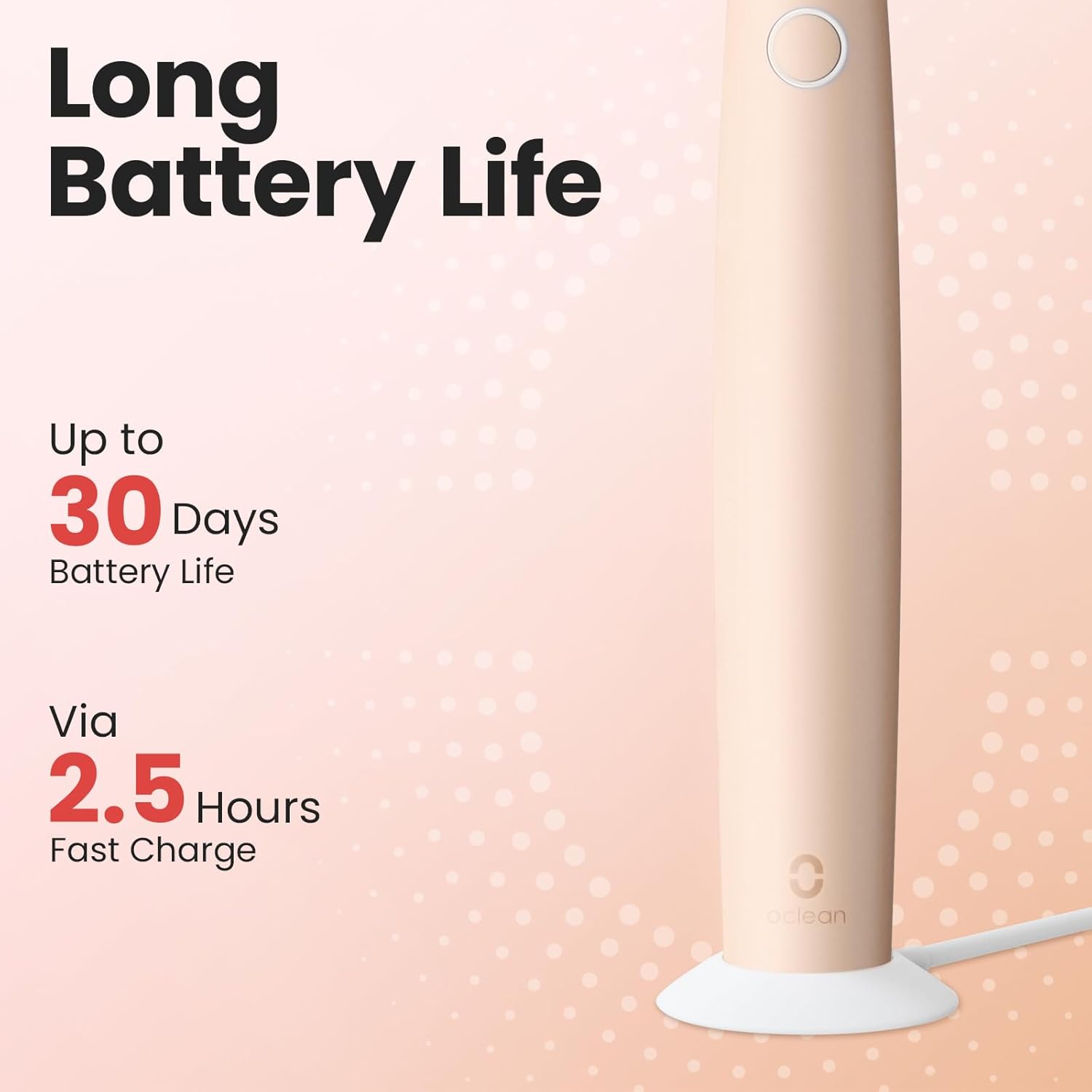 Oclean Air 2, Sonic Electric Toothbrush, Portable Ultra Quiet Design, Dupont Brush Head Bristles, 2H Quick Charge For 40 Days, Ipx7 – White Tulip