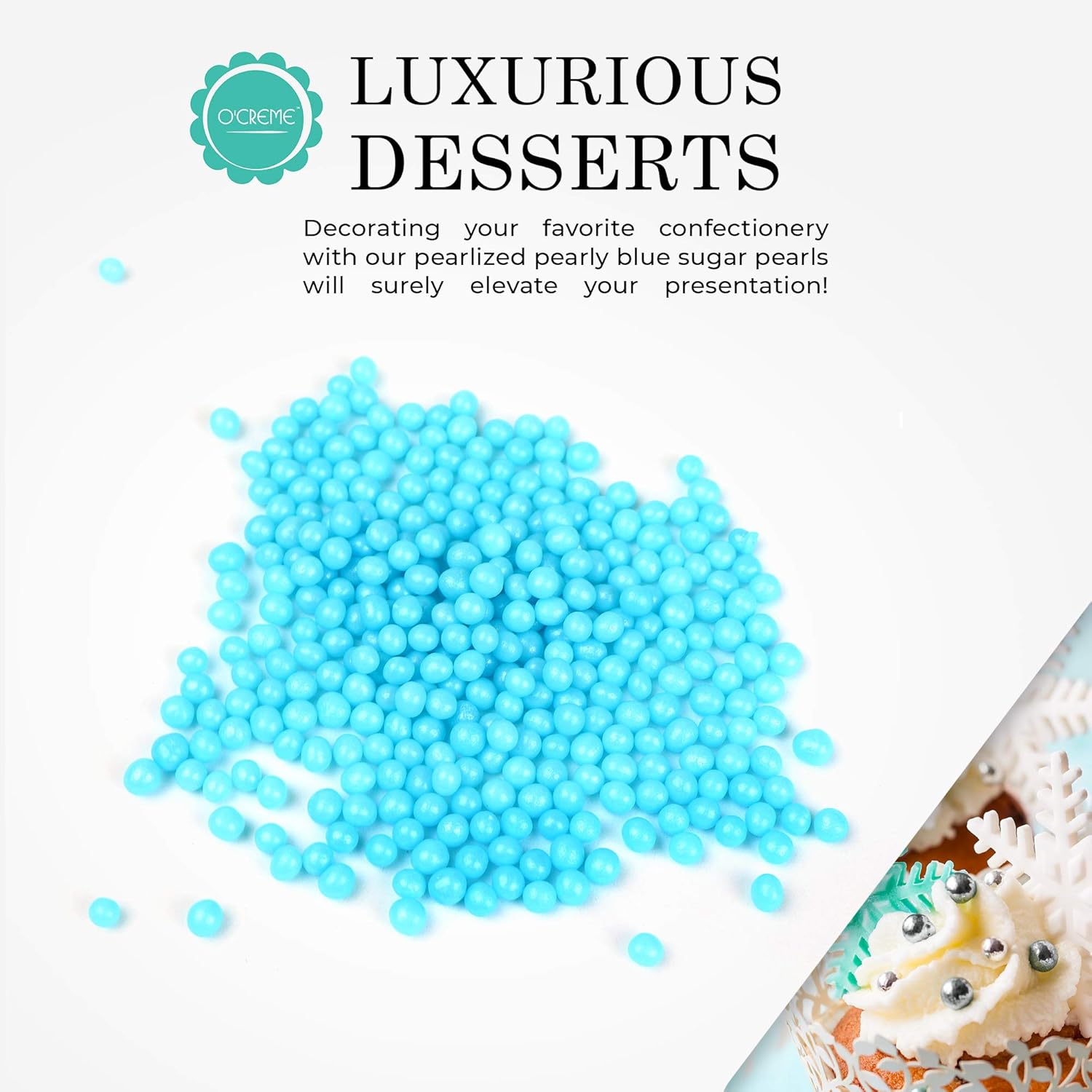 O'Creme Blue Edible Sugar Pearls Cake Decorating Supplies For Bakers: Cookie, Cupcake & Icing Toppings, Beads Sprinkles For Baking, Certified, Candy Sugar Ball Accents (4Mm, 16 Oz)