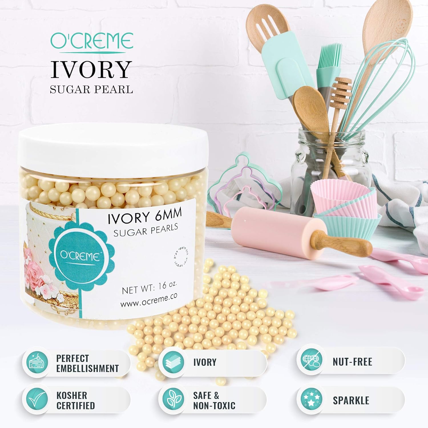 About this item ?? MAKE IT SPARKLE – Surprise your party guests with luxurious-looking desserts! Decorating your favorite confectionery with our lustrous ivory colored pearl spheres will surely elevate your presentation. ?? GREAT FOR MOST DESSERTS – Our ivory sugar pearls are classy for wedding and birthday cakes. But you can also use them to embellish cookies, cupcakes, ice cream, fondant and pastries for added pizzazz. ?? DECORATE MORE – Unlike other toppings, each pack of our cake supplies contains enough sparkling balls to adorn many treats. Bedeck more desserts with our 8 oz. ivory sugar pearls. ?? CERTIFIED – Not For Passover. Under the supervision of Rav Dott. Alberto Avraham Sermoneta - Comunita Ebraica Bologna ?? 100% SATISFACTION GUARANTEED – We’re confident you’ll love our dessert decorations. In the rare case that we don’t meet your expectations, you can always count on our money-back guarantee. › See more product details,?? MAKE IT SPARKLE – Surprise your party guests with luxurious-looking desserts! Decorating your favorite confectionery with our lustrous ivory colored pearl spheres will surely elevate your presentation,?? GREAT FOR MOST DESSERTS – Our ivory sugar pearls are classy for wedding and birthday cakes. But you can also use them to embellish cookies, cupcakes, ice cream, fondant and pastries for added pizzazz,?? DECORATE MORE – Unlike other toppings, each pack of our cake supplies contains enough sparkling balls to adorn many treats. Bedeck more desserts with our 8 oz. ivory sugar pearls,?? CERTIFIED – Not For Passover. Under the supervision of Rav Dott. Alberto Avraham Sermoneta - Comunita Ebraica Bologna,?? 100% SATISFACTION GUARANTEED – We’re confident you’ll love our dessert decorations. In the rare case that we don’t meet your expectations, you can always count on our money-back guarantee