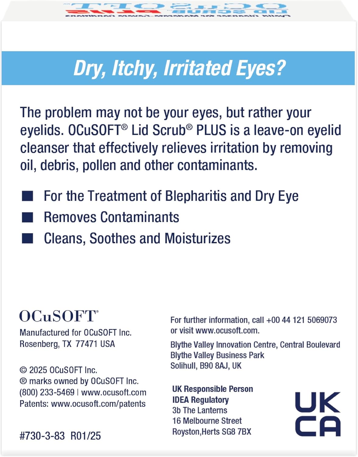About The Product : Ocusoft Lid Scrub Plus, for the treatment of dry eye, meibomian gland dysfunction & blepharitis including Demodex. Medicated