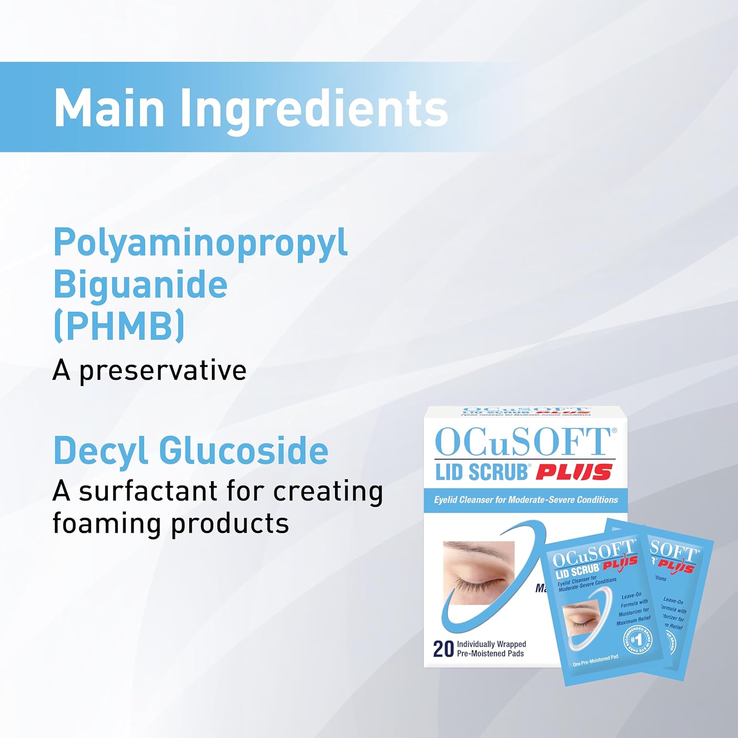 Ocusoft Lid Scrub Plus 20 Wipes For Eyes, Cleansing, Moisturizing, Treating Dry Eye, Meibomian Gland Dysfunction, Blepharitis Including Demodex