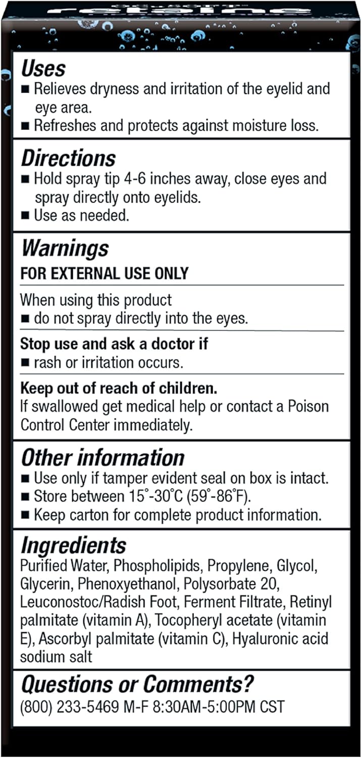 OCuSOFT Retaine Liposome Spray with Hyaluronic Acid contains vitamins A, C, and E which are known to reduce the appearance of fine lines and wrinkles around the eyes/eyelids