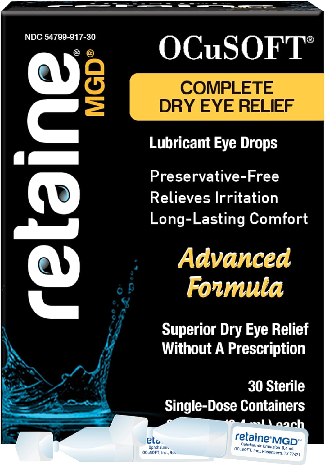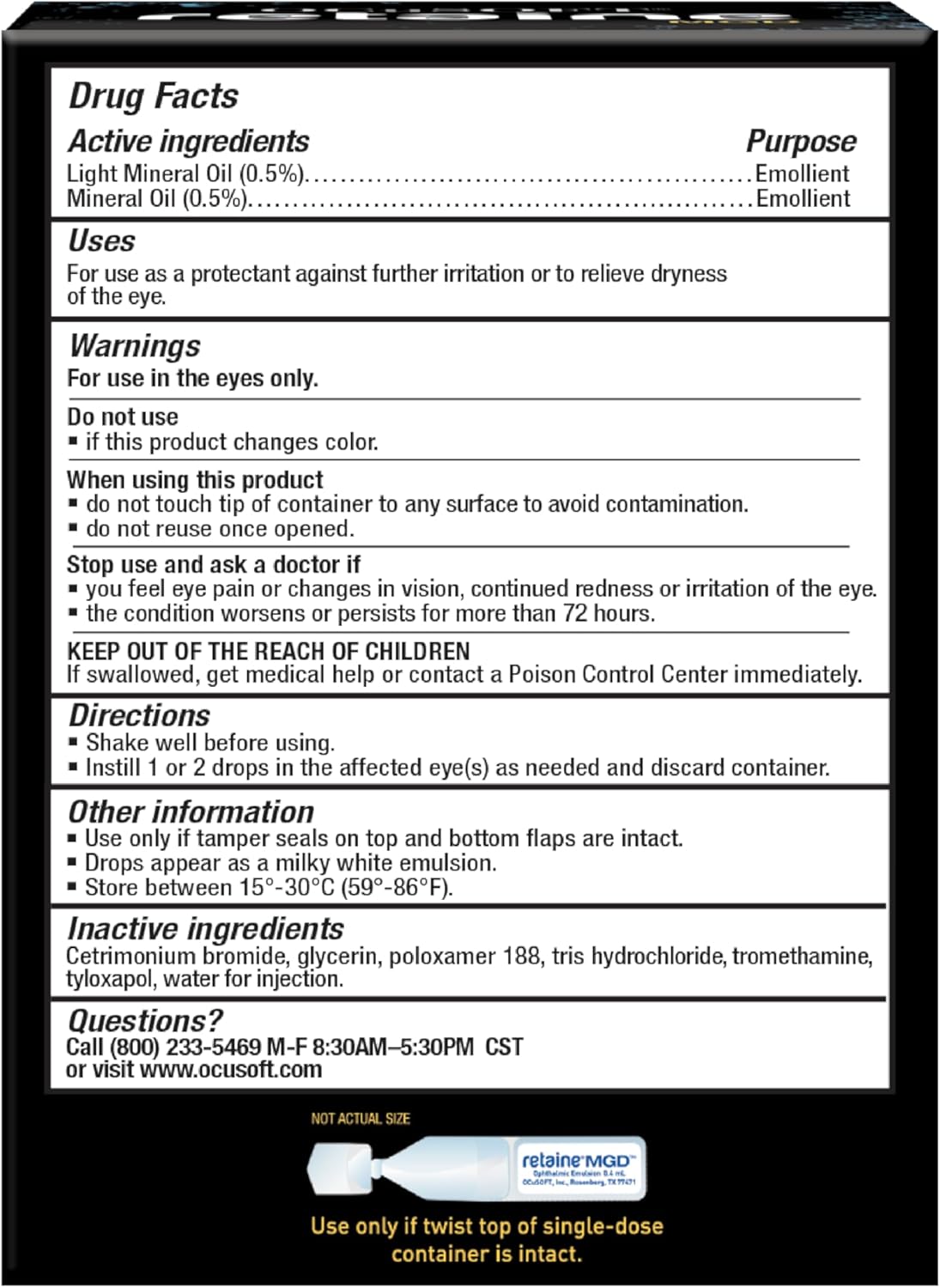 Ocusoft Retaine Mgd Ophthalmic Emulsion - Complete Dry Eye Relief - Soothes Red & Irritated Eyes - 30 Count Preservative-Free Single-Use Containers - 0.01 Fl Oz