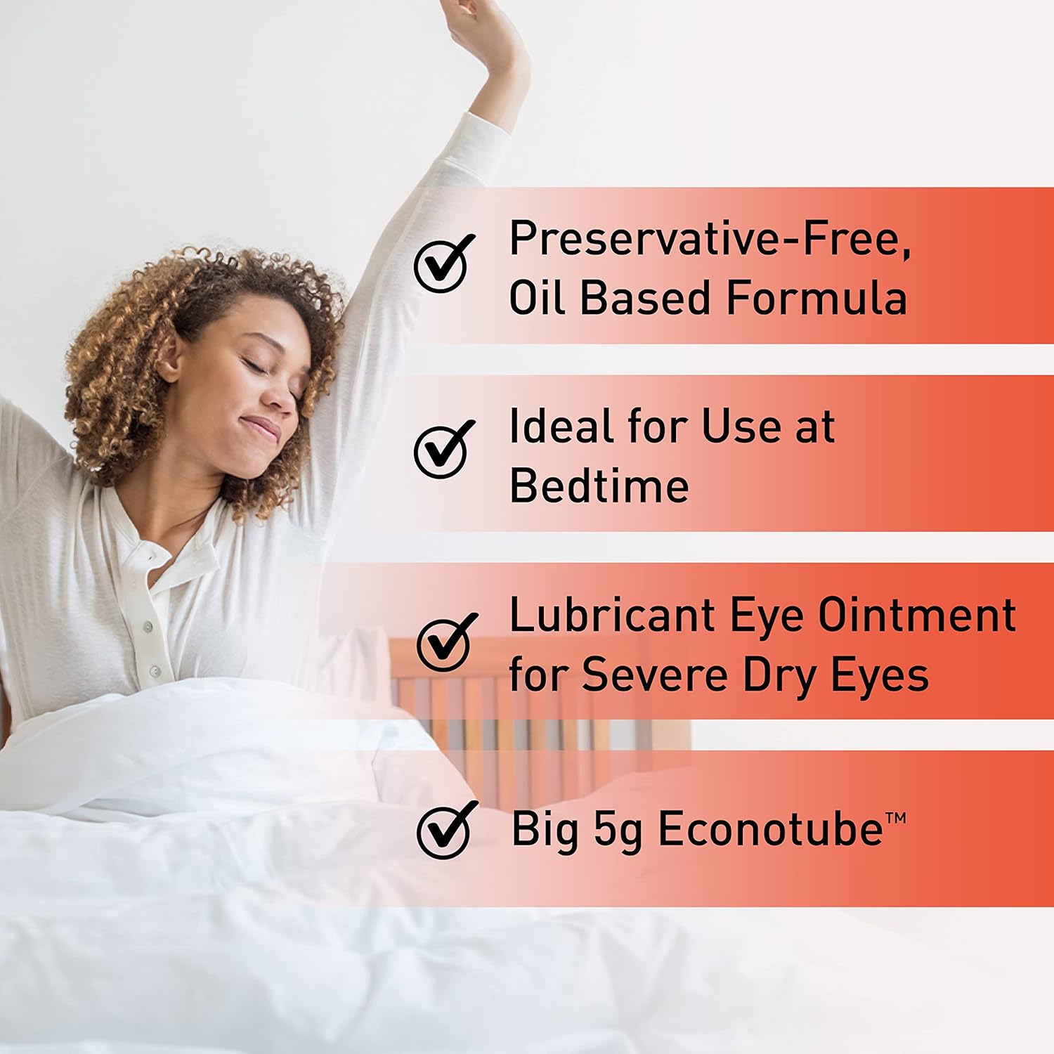 Seals in Moisture with Preservative-Free Oil Based Formula - This eye ointment is formulated with moisture-sealing, oil-based ingredients that protects against night dryness and exposure. The best part, it is Preservative-Free!