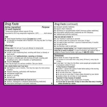 Ohm Omeprazole Delayed-Release Capsules, Treats Frequent Heartburn, 24Hrs, 20Mg Acid Reducer, 42 Capsules
