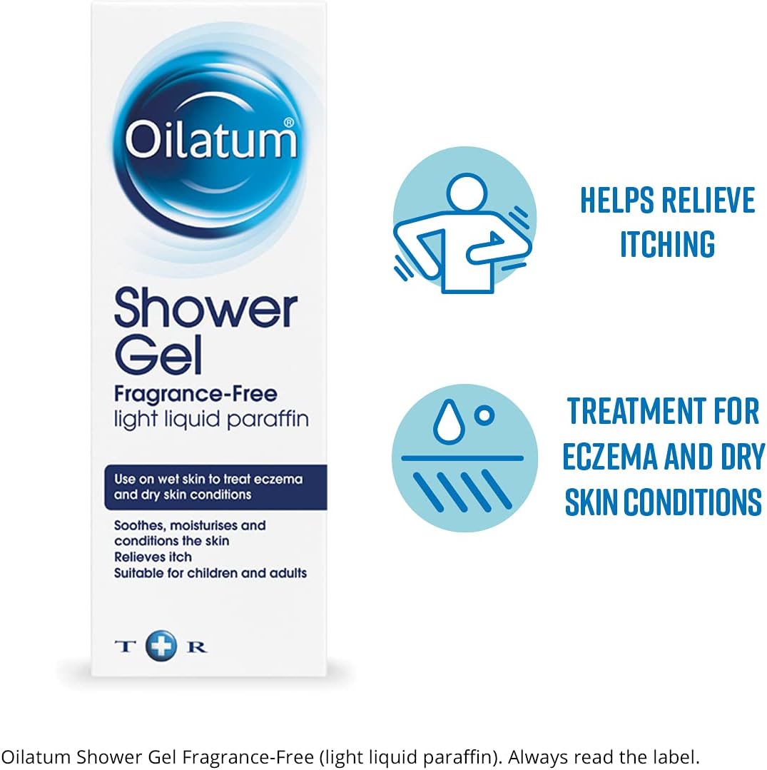 Product Description Product Description: Treat your eczema with Oilatum Shower Gel Fragrance Free, formulated for the treatment of eczema and related dry and itchy skin conditions. This effective formula is specially developed to use in the shower, containing a non-foaming emollient gel. If you are suffering with eczema and related dry skin conditions, Oilatum Shower Gel Fragrance Free provides relief for your skins needs, it soothes, moisturises and conditions your skin whilst stopping loss of moisture. Oilatum Shower Gel Fragrance Free provides soothing relief and helps relieve itching. It forms a protective emollient film which moisturises and conditions your skin and stops the loss of moisture. Our shower gel cleanses the skin and contains no fragrances; therefore, it is unlikely to irritate sensitive skin. Suitable for adults and children with eczema and itchy, dry skin. Directions: Oilatum Shower Gel Fragrance Free can be used as frequently as necessary; Shower as usual and apply liberally to wet skin and massage gently. Rinse off with warm water and lightly pat the skin dry. Oilatum has been trusted for 50 years by families to relieve dry and eczema-prone skin. Known for its products that provide relief and hydration for dry and itchy skin conditions such as eczema. Oilatum products are expertly formulated to soothe and hydrate, offering comfort and protection. Discover Oilatum and let your skin experience the soothing protection it deserves. Ideal for sensitive skin, Oilatum’s gentle formulations address dryness and irritation with ease and confidence. People around the globe use Oilatum for its ability to deliver hydration and relief, establishing it as a staple in personal and family skincare regimens. Oilatum Shower Gel Fragrance Free Ingredients: Active ingredient: Light Liquid Paraffin 70% w/w. Each gram of gel contains 700mg of Light Liquid Paraffin. Other ingredients: polyethylene, 2- octadodecanol, polyethylene glycol 400 dilaurate, polyoxyethylene 40 sorbitol septaoleate, polypropyleneglycol-2-myristyl ether propionate, polyphenylmethyl siloxane copolymer. Oilatum Shower Gel Fragrance Free (light liquid paraffin) is a medicine to treat eczema and related dry skin conditions. Always read the label. Ingredients Active Ingredient: Light Liquid Paraffin 70% w/w Each gram of gel contains 700 mg of Light Liquid Paraffin, Also contains: Polyethylene, 2-Octadodecanol, Polyethylene Glycol 400 Dilaurate, Polyoxyethylene 40 Sorbitol Septaoleate, Polypropyleneglycol-2-Myristyl Ether Propionate, Polyphenylmethyl Siloxane Copolymer P.when('A').execute(function(A) { A.on('a:expander:toggle_description:toggle:collapse', function(data) { window.scroll(0, data.expander.$expander[0].offsetTop-100); }); }); Safety Warning Always read the label Manufacturer Contact Information Thornton & Ross Ltd., Huddersfield, HD7 5QH, UK See more,TREATS ECZEMA AND RELATED DRY SKIN CONDITIONS - Specially developed to use in the shower, containing a non-foaming emollient gel that is used to treat itchy, irritating dry skin conditions such as eczema,SOOTHING RELIEF - Oilatum shower gel works by soothing, moisturising, and conditioning your skin and to stop the loss of moisture,SUITABLE FOR - Adults and children with dry, sensitive, and eczema-prone skin,HOW TO USE - Oilatum Shower Gel may be used as frequently as necessary; Shower as usual and apply liberally to wet skin and massage gently; Rinse with warm water and lightly pat the skin dry,TRUSTED BRAND - Oilatum has been trusted for 50 years by families, to relieve dry and eczema-prone skin