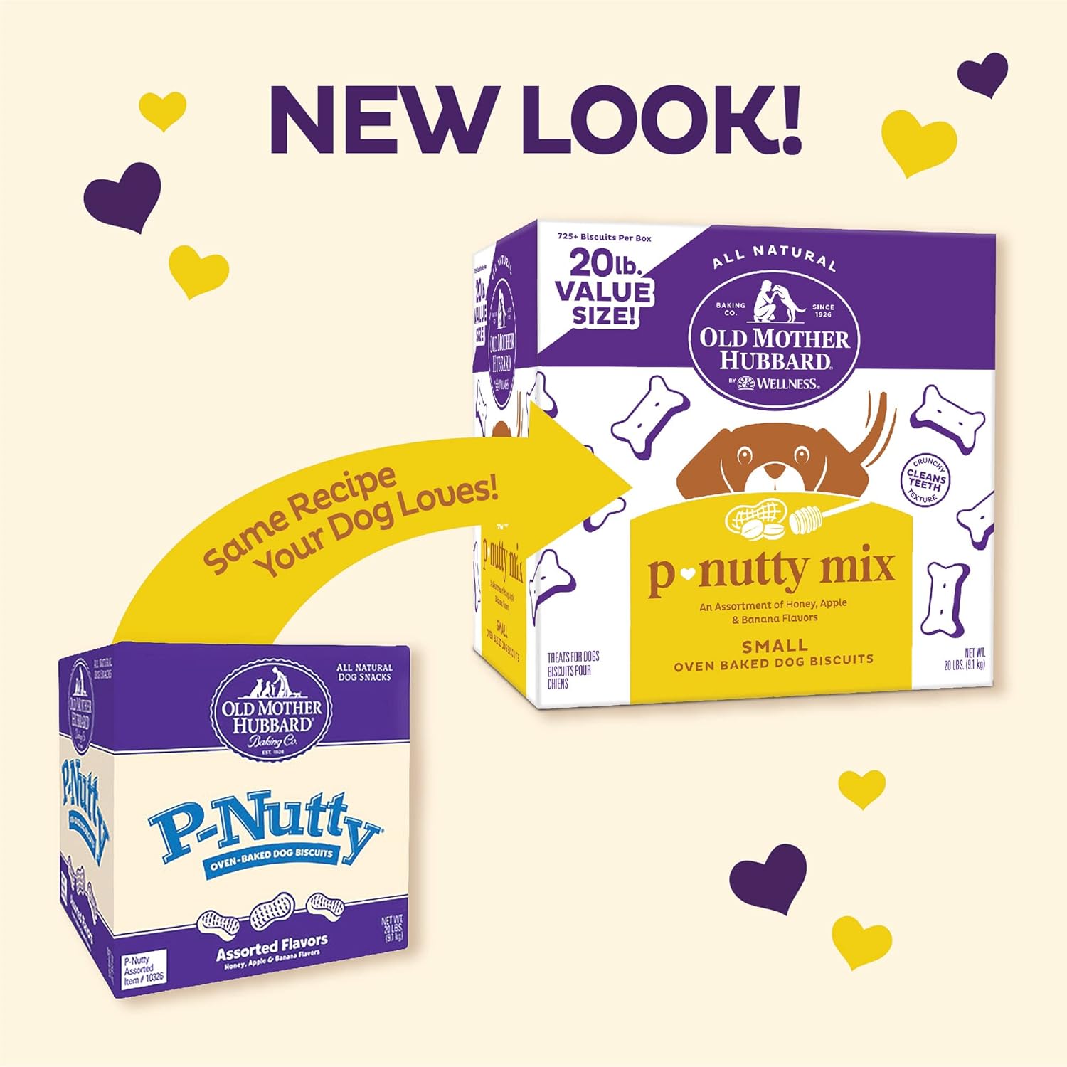 Old Mother Hubbard By Wellness P-Nutty Assorted Mix Natural Dog Treats, Crunchy Oven-Baked Biscuits, Ideal For Training, Small Size, 20 Pound Box