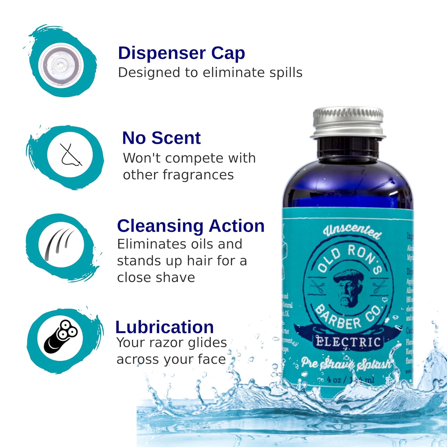 Old Ron'S Barber Co. Electric Pre-Shave Splash, Unscented, 4 Oz (1-Pack)