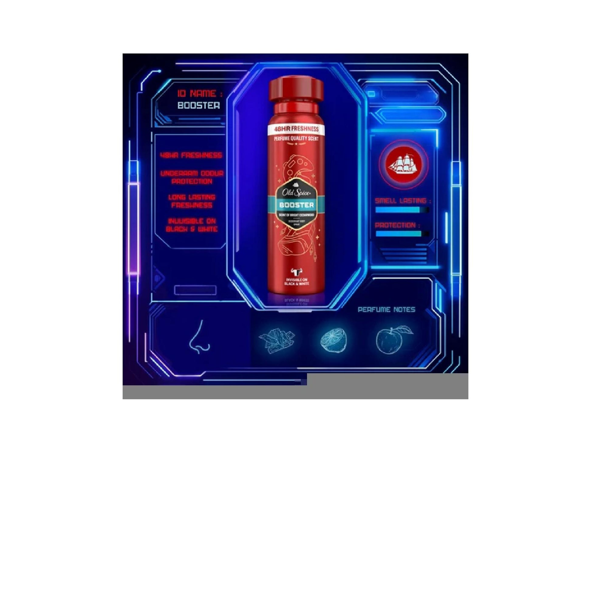 Type Of Packaging:Spray&Skin Type:Normal&Fragrance Category:Aquatic Old Spice Booster Is An Essential Everyday Accessory In The Fight Against Perspiration. Characteristics: Regulates Perspiration And Skin Moisture Provides Long-Lasting Protection Adds Freshness Neutralises Odours How To Use: Apply To Clean, Dry Skin Under The Arms. Suitable For Everyday Use About The Brand:Class Old Spice Complete Hair And Skin Care For Men. This Is What Old Spice Offers To Their Customers. They Elaborate Cosmetics For Men That Help Them Care For Their Body From Head To Toe. They Focus On MenāS Daily Routine To Provide Products That Work. Old Spice Is Not Only Involved In Skin Care. The American Brand Also Helps Build A Better Future For Young People In The Usa By Creating A Community Where Adults Mentor Young People To Help Them With Their Start In Working Life. Old Spice School Of Swagger Is More Than 80 Years Old And Has Helped Thousands Of Young People During Their Transition To Adulthood. Old Spice Deodorant Is The Most Famous Part Of The BrandāS Work, Along With Old Spice Aftershave. Their Products Are Designed For Men To āSmell Confidentā. Their Range Goes From Shampoo And Conditioner To Body And Armpit Care Ingredients:Ingredients Old Spice Booster Complete Ingredients List Butane, Isobutane, Propane, Dimethicone, Aluminum Chlorohydrate, Aluminum Starch Octenylsuccinate, Aqua, Parfum, C12-15 Alkyl Benzoate, Cyclodextrin, Isopropyl Myristate, Disteardimonium Hectorite, Triethyl Citrate, Dimethiconol, Hexyl Cinnamal, Limonene, Linalool, Citronellol, Geraniol The Manufacturer Is Responsible For The Ingredients Of The Product. We Recommend Checking The List Of Product Ingredients Directly On Its Packaging Due To Potential Changes