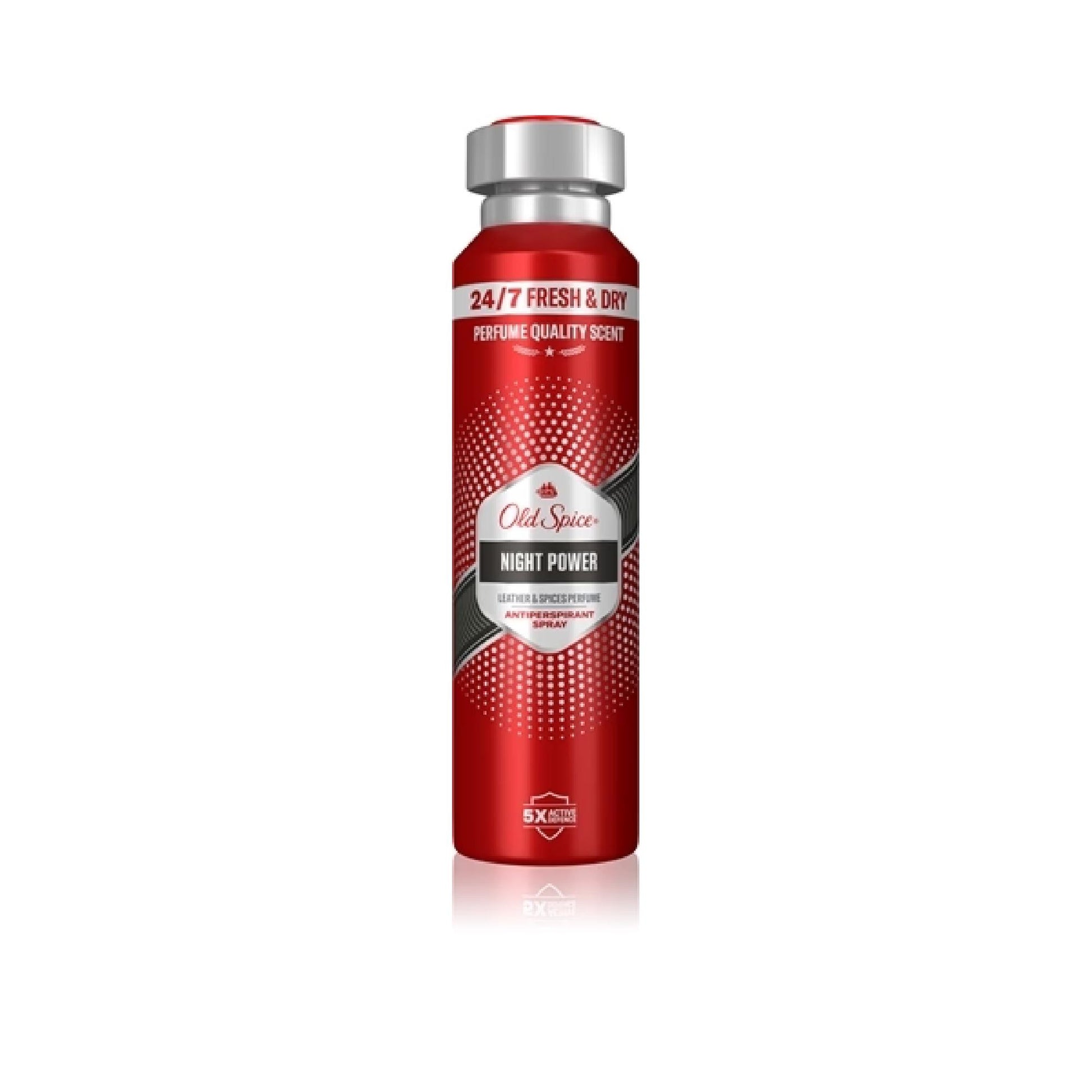 Type Of Packaging:Spray&Skin Type:All Skin Types&Fragrance Category:Oriental, Spicy, Gourmand Whatever Your Program For The Day, You Can Throw Your Sweaty Clothes Worries Behind You. Antiperspirant Old Spicenight Power Prevents That Annoying Faux Pas That Is Underarm Staining. Thanks To Its Antiperspirant Ingredients, It Will Actively Prevent The Formation Of Sweat And Help Keep Your Skin Dry. It Provides You With Long-Lasting Protection Against Body Odour And Unwanted Wetness, So You Can Enjoy A Fresh And Clean Feeling All Day Long. Characteristics: Provides Effective Protection Against Perspiration Leaves A Long-Term Feeling Of Freshness Does Not Leave Stains On Clothing Provides Long-Lasting Protection Ensures Optimum Absorption Of Perspiration Prevents Irritation And Soothes The Skin The Product Is Specially Developed For The Needs Of MenāS Skin How To Use: Apply To Clean, Dry Skin Under The Arms. Suitable For Everyday Use About The Brand:Class Old Spice Complete Hair And Skin Care For Men. This Is What Old Spice Offers To Their Customers. They Elaborate Cosmetics For Men That Help Them Care For Their Body From Head To Toe. They Focus On MenāS Daily Routine To Provide Products That Work. Old Spice Is Not Only Involved In Skin Care. The American Brand Also Helps Build A Better Future For Young People In The Usa By Creating A Community Where Adults Mentor Young People To Help Them With Their Start In Working Life. Old Spice School Of Swagger Is More Than 80 Years Old And Has Helped Thousands Of Young People During Their Transition To Adulthood. Old Spice Deodorant Is The Most Famous Part Of The BrandāS Work, Along With Old Spice Aftershave. Their Products Are Designed For Men To āSmell Confidentā. Their Range Goes From Shampoo And Conditioner To Body And Armpit Care Ingredients:Ingredients Old Spice Night Power Complete Ingredients List Butane, Isobutane, Propane, Dimethicone, Aluminum Chlorohydrate, Aluminum Starch Octenylsuccinate, Aqua, Parfum, C12-15 Alkyl Benzoate, Cyclodextrin, Isopropyl Myristate, Disteardimonium Hectorite, Linalool, Triethyl Citrate, Hexyl Cinnamal, Dimethiconol, Coumarin, Limonene, Geraniol, Citronellol, Eugenol The Manufacturer Is Responsible For The Ingredients Of The Product. We Recommend Checking The List Of Product Ingredients Directly On Its Packaging Due To Potential Changes