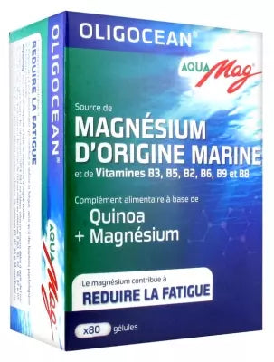 Oligocean Aqua Mag Marine Origin Magnesium 80 Capsules Is A Food Supplement Based On Quinoa And Magnesium. Magnesium Is A Major Mineral That Helps Reduce Fatigue, As Well As Normal Psychological And Muscular Functions. This Food Supplement Offers A Complex Based On Magnesium Of Marine Origin. Magnesium Is Obtained According To A Process Defined From The Seawater Of The Dead Sea. Vitamins B3, B5, B2, B6 And B9 Help Reduce Fatigue And Vitamins B3, B2, B6, B8 Contribute To The Normal Functioning Of The Nervous System