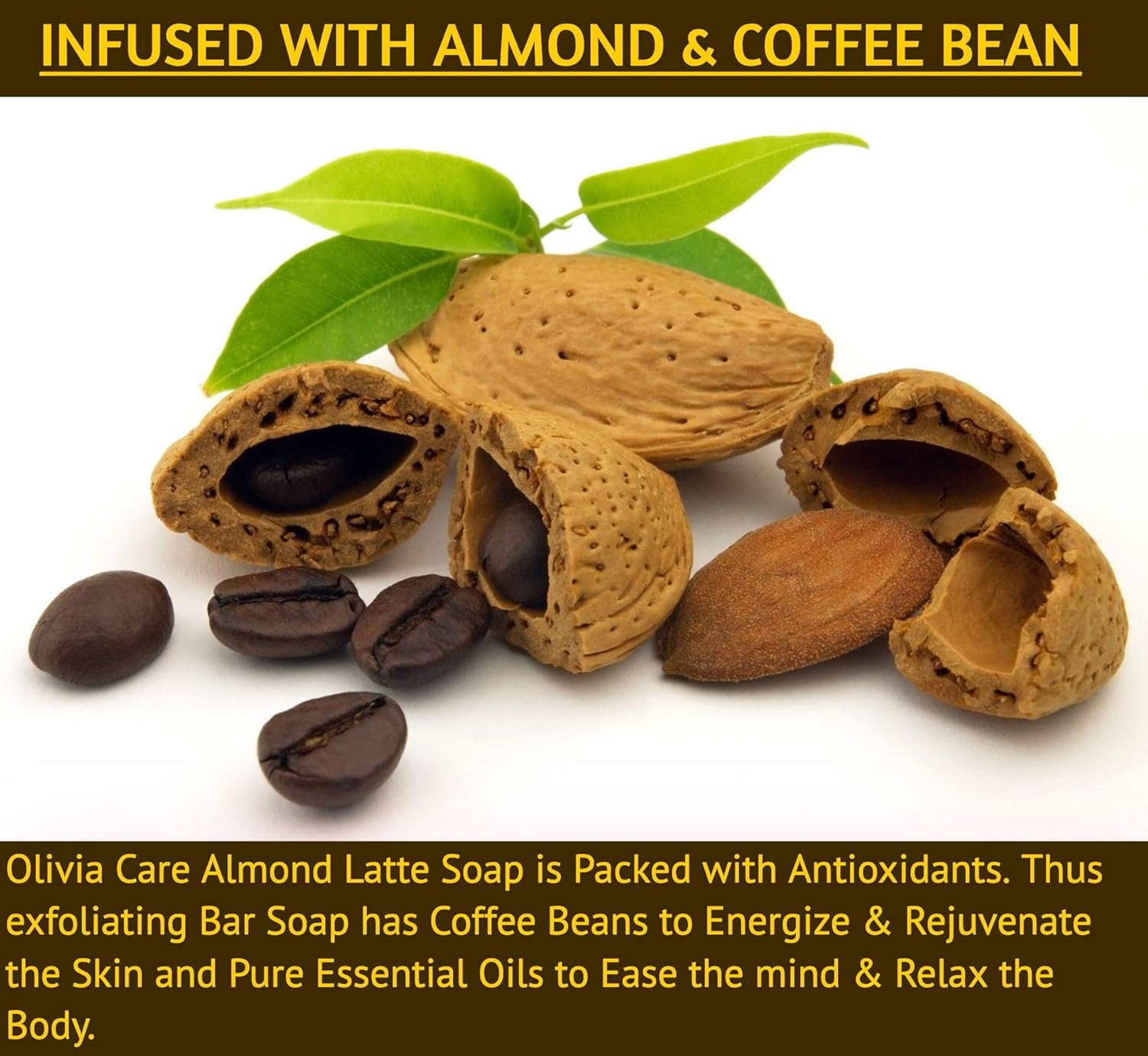 Olivia Care Exfoliating Bar Soap, Coffee Beans, 100% Natural, Organic Ingredients, Clean Energize Mind Body, Full Of Vitamin & Antioxidants (Almond Latte)