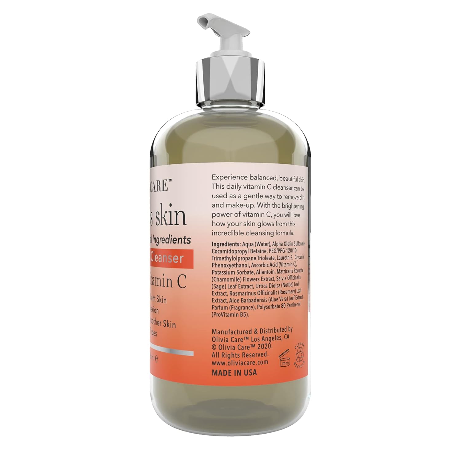 ? AMAZING BRIGHTENING VITAMIN C FACIAL CLEANSER: Olivia Care Daily Facial Cleanser promotes experience balanced and beautiful Skin. This daily vitamin C cleanser can be used as a gentle way to remove dirt and make up. With the brightening power of Vitamin C, you will love how your skin glows from this incredible cleansing formula
