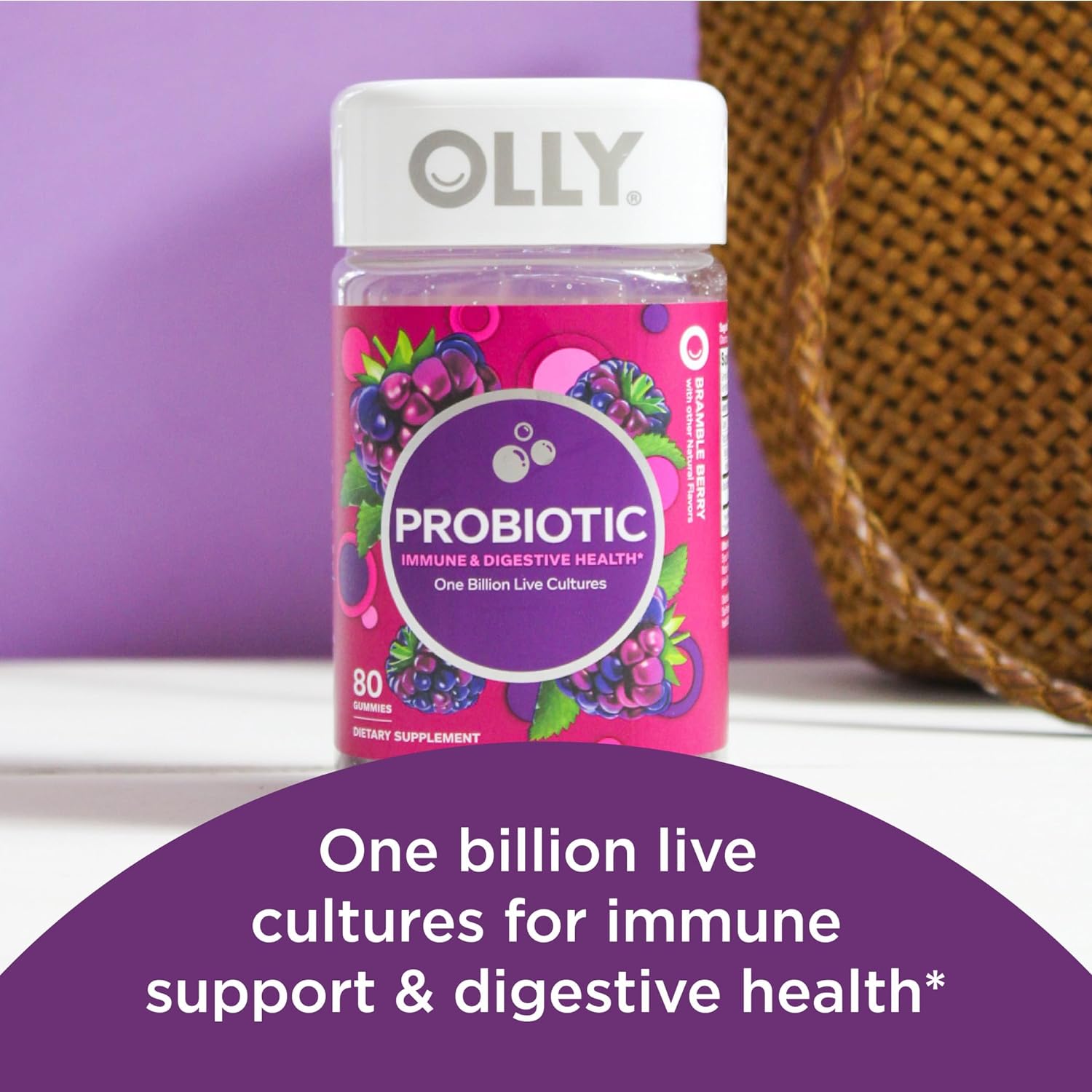 Olly Probiotic Gummy, Immune And Digestive Support, 1 Billion Cfus, Chewable Probiotic Supplement, Berry, 40 Day Supply - 80 Count
