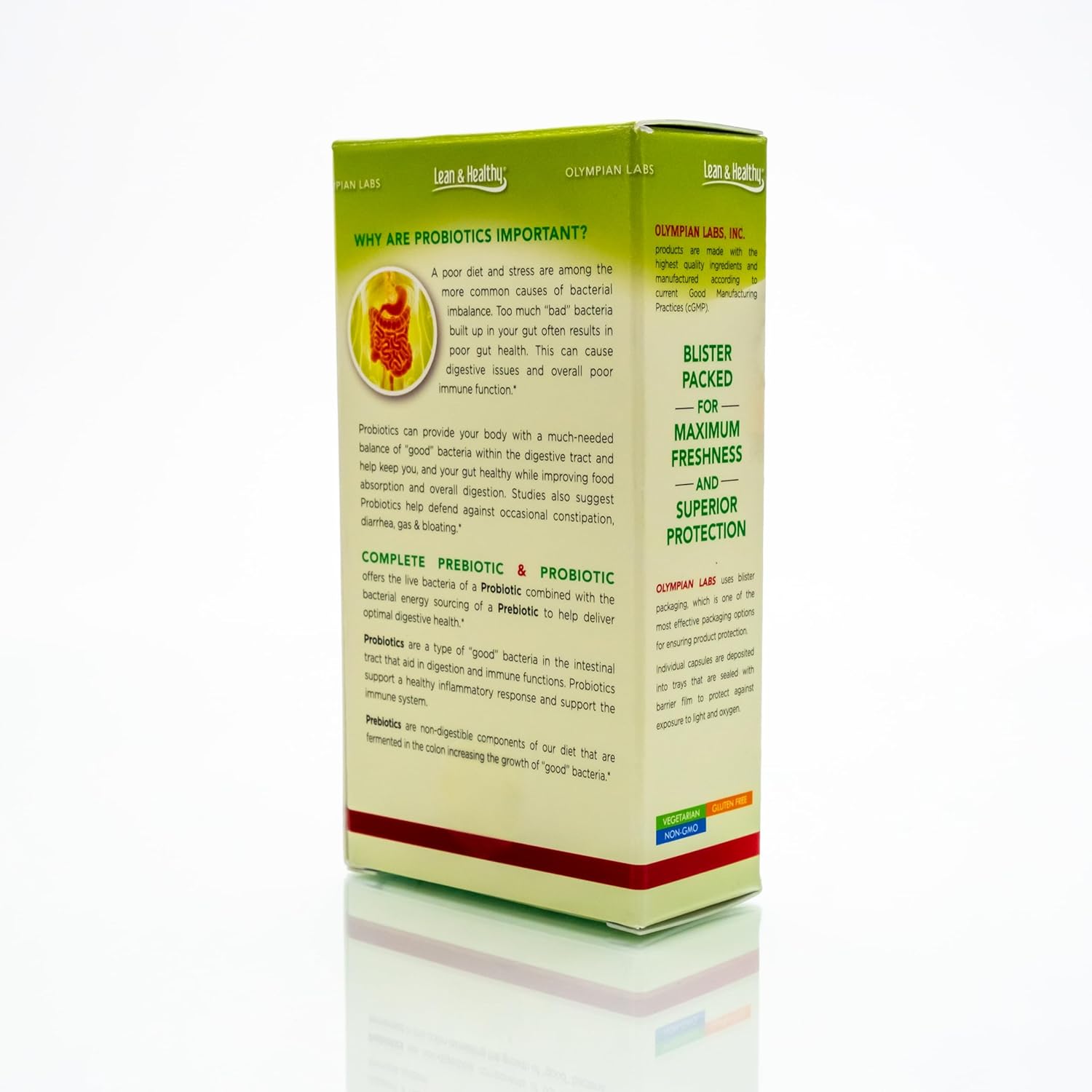 Olympian Labs Complete Prebiotic And Probiotic Supplement - 25 Billion Live Shelf Stable Cultures - 30 Vegetarian Capsules, Helps Restore The Natural Balance Within The Digestive Tract