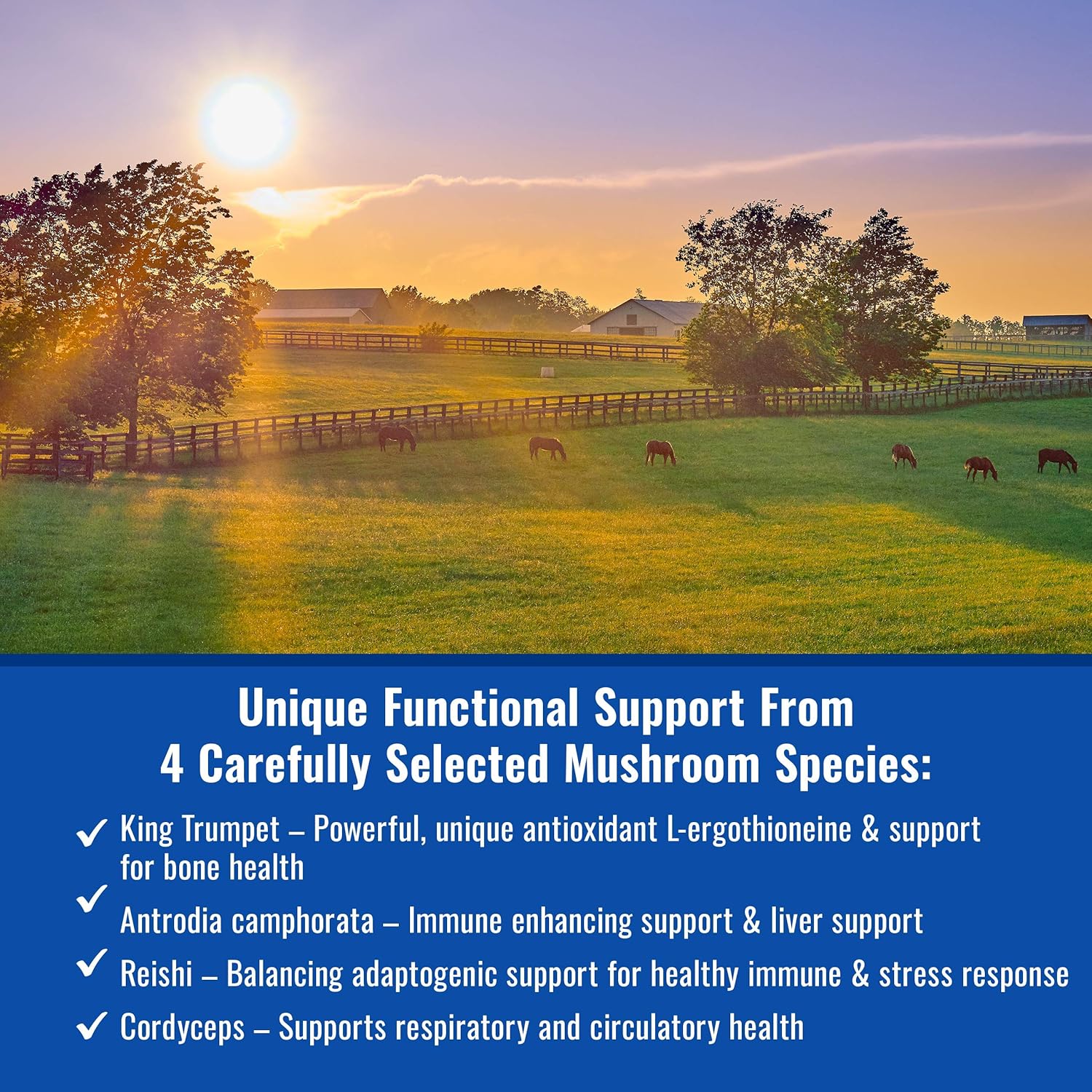 Broad Spectrum Support: Mushroom Matrix Equine Wellbeing Blend Mushroom Powder Supplement contains four different mushroom powders to support your horse’s overall vitality & wellness; great for older horses