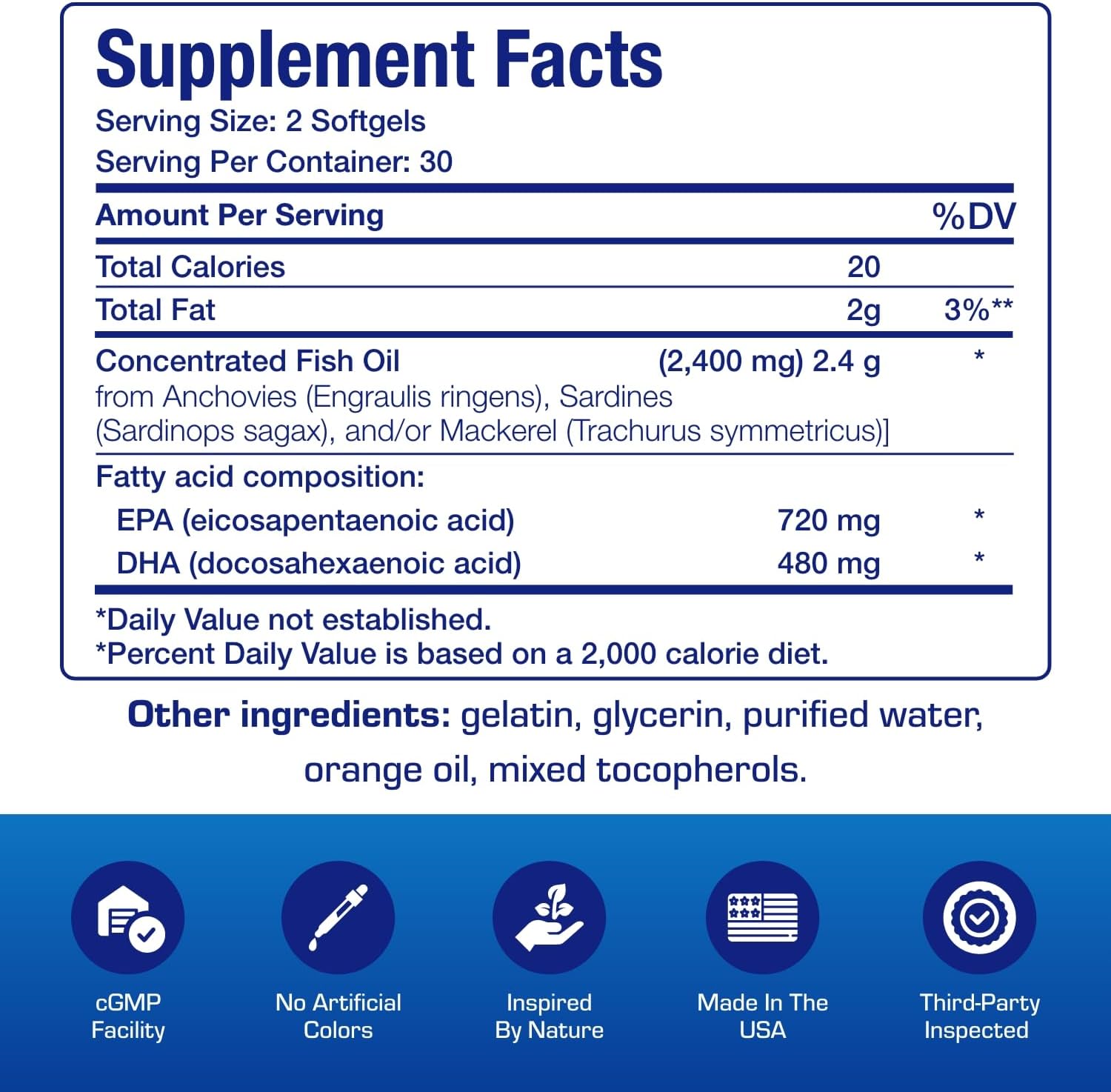 About this item Professional Formula: We are proud to offer our high strength fish oil omega 3 supplements with 1200mg of EPA and DHA per serving rich in naturally occurring vitamin D and trace minerals Elevate your Health: Fish oil supplements are a time tested way to help provide skin, joint, brain and heart health support especially since many people don't get adequate fatty fish in their diet Anabolic Advantage: Unlike many generic omega 3 fatty acid supplements our fish oil pills are sustainably sourced and molecularly distilled to provide you with a clean and guilt free product Trusted Name Since 1924: Anabolic Laboratories has been committed to providing the highest quality nutritional products for 100 years and counting including our fish oil 1200 mg 360 mg omega-3 formula Guaranteed Potent and Pure: You can rest assured knowing you have a premium product with Anabolic Labs as all of our supplements are cGMP made in our NPA and FDA inspected American labs See more product details,Professional Formula: We are proud to offer our high strength fish oil omega 3 supplements with 1200mg of EPA and DHA per serving rich in naturally occurring vitamin D and trace minerals,Elevate your Health: Fish oil supplements are a time tested way to help provide skin, joint, brain and heart health support especially since many people don't get adequate fatty fish in their diet,Anabolic Advantage: Unlike many generic omega 3 fatty acid supplements our fish oil pills are sustainably sourced and molecularly distilled to provide you with a clean and guilt free product,Trusted Name Since 1924: Anabolic Laboratories has been committed to providing the highest quality nutritional products for 100 years and counting including our fish oil 1200 mg 360 mg omega-3 formula,Guaranteed Potent and Pure: You can rest assured knowing you have a premium product with Anabolic Labs as all of our supplements are cGMP made in our NPA and FDA inspected American labs