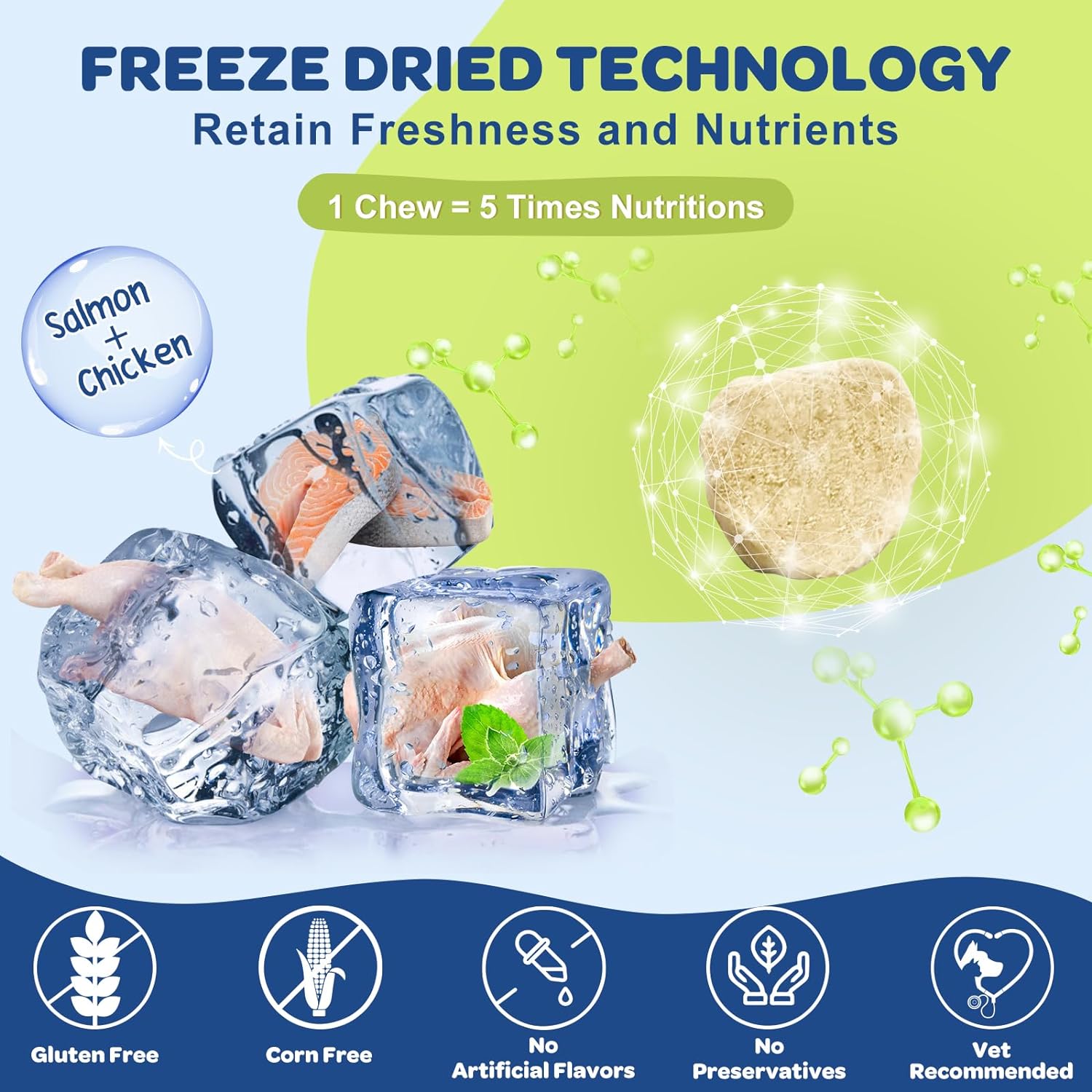 All-Natural Ingredients: We Prioritize Your Dog'S Well-Being. Our Dog Fish Oil Freeze-Dried Chews Are Based On Real Chicken & Salmon And Are Perfect For Picky Eaters. We Remove The Moisture Of All High-Quality Ingredients To Retain Nutrients And Flavor. It Is Free Of Any Artificial Additives Or Fillers. No Wheat, Corn, Soy, Or Gluten. Non-Gmo And Is Vet Recommended. Your Dog Will Not Only Look Great But Also Feel Their Best From The Inside Out