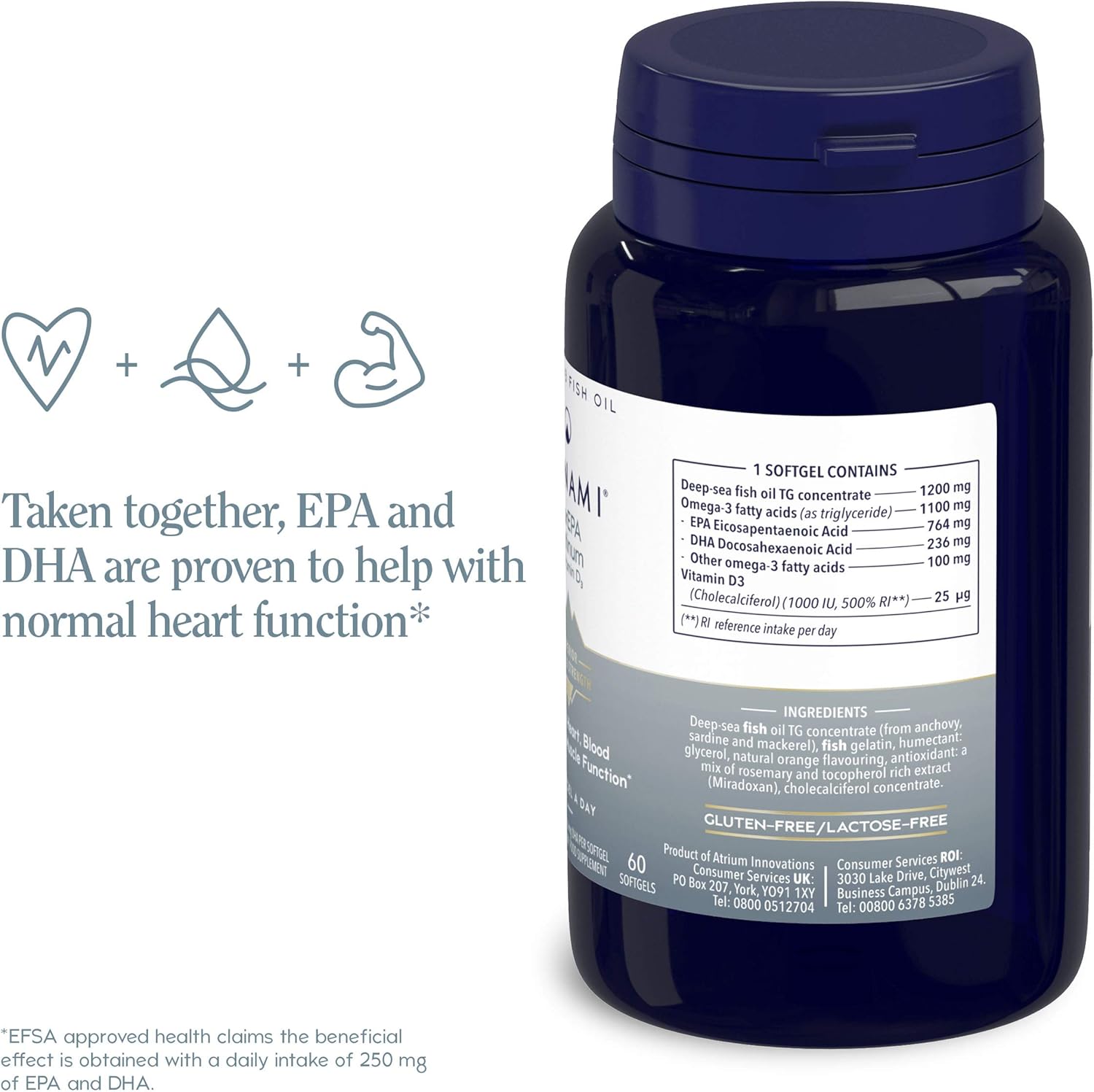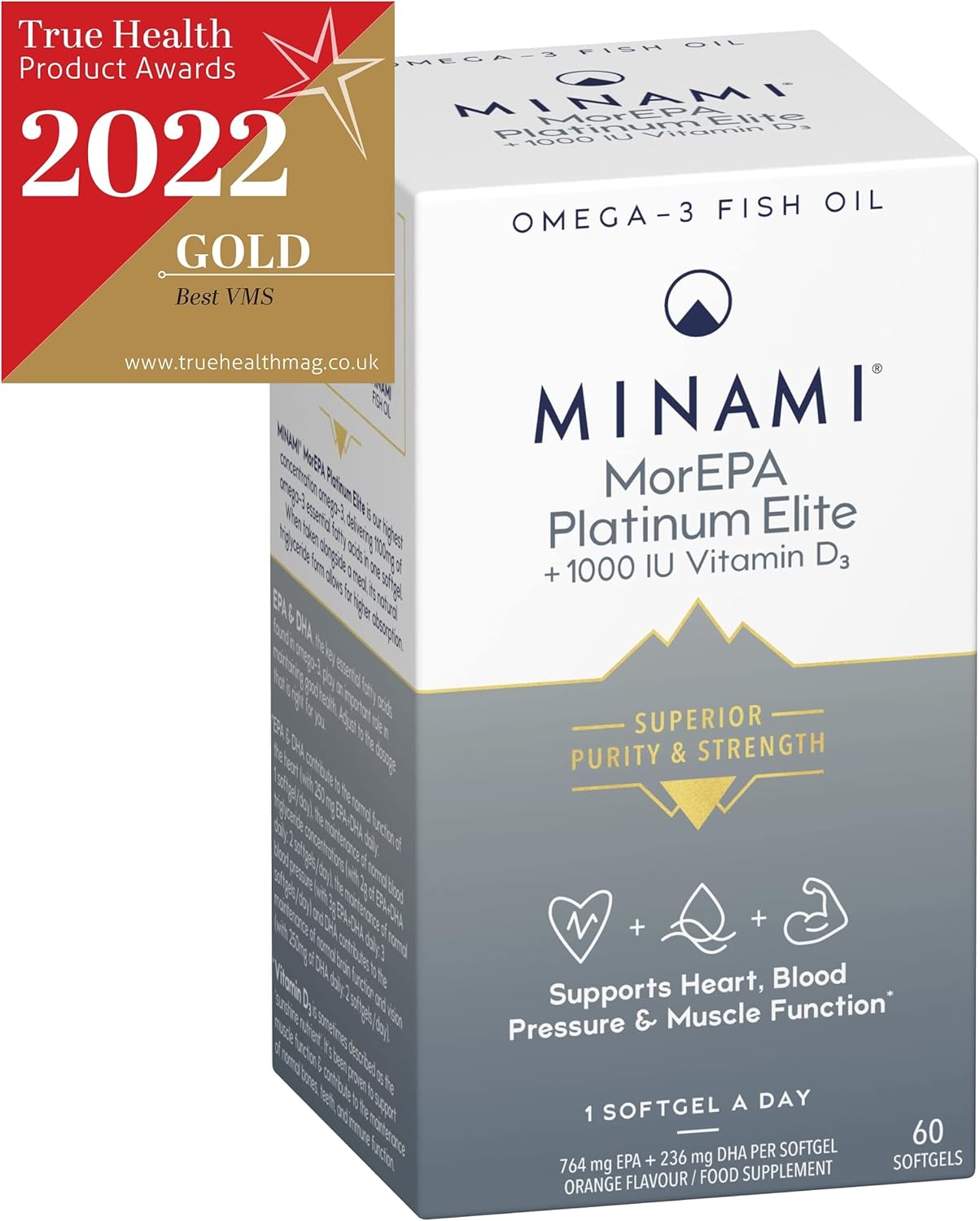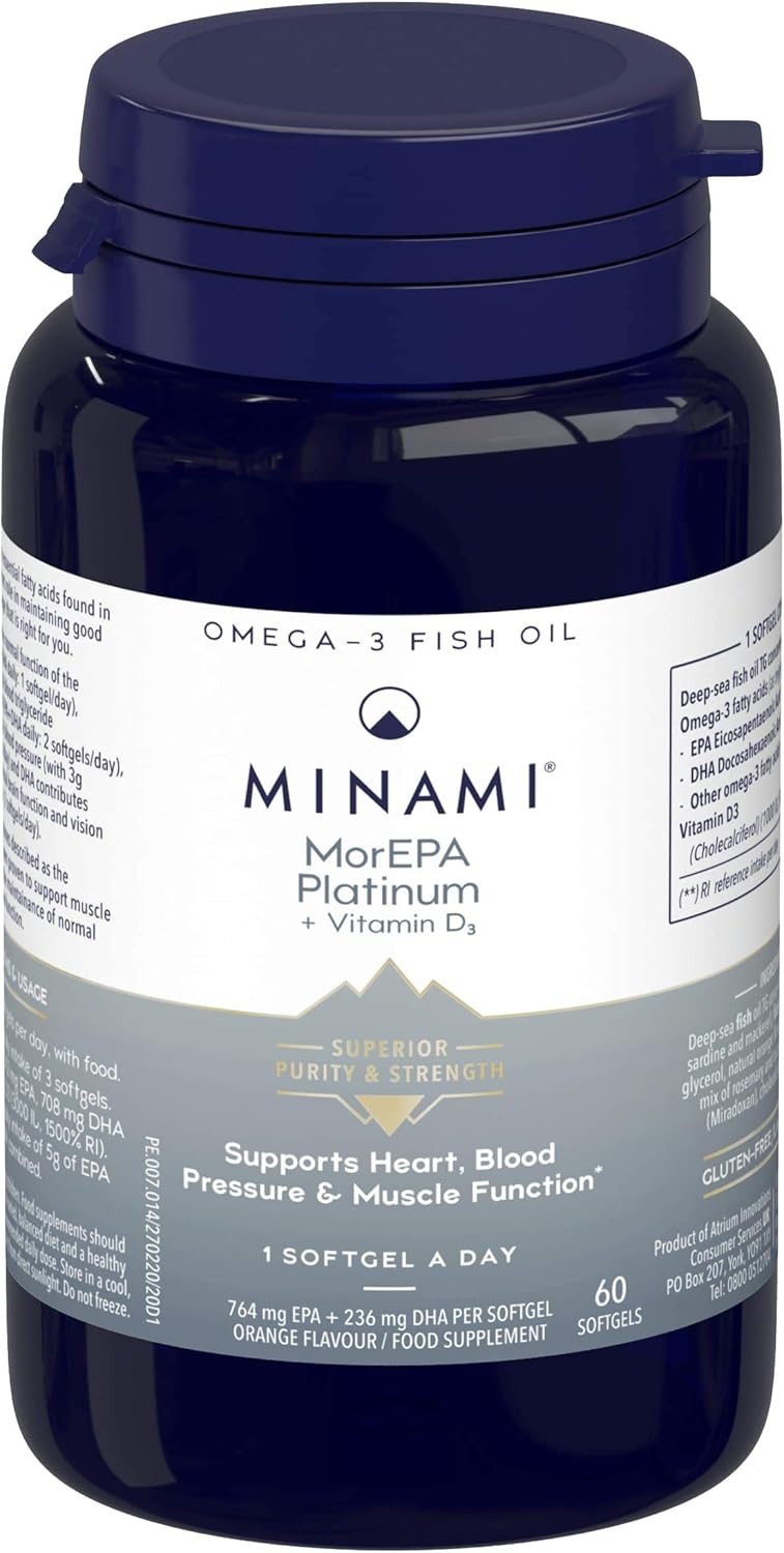 Omega 3 Fish Oil Supplement - Minami - Morepa Platinum With High Concentration Of Epa, Dha & Vitamin D - Helps Maintain Healthy Heart, Blood Pressure And Muscle Function - 60 Softgels