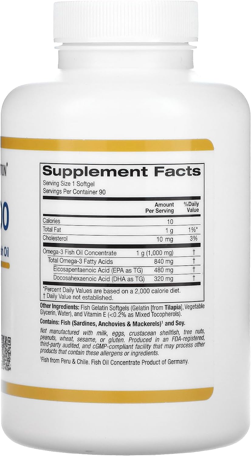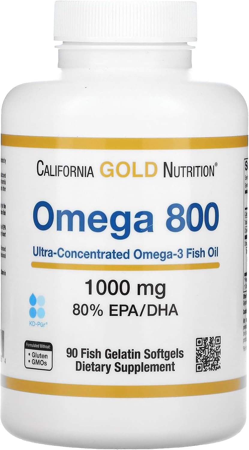 DESCRIPTION : Omega 800 Pharmaceutical Grade Fish Oil, 80% EPA/DHA, Triglyceride Form, 1,000 mg, 30 Fish Gelatin Softgels, California Gold Nutrition
