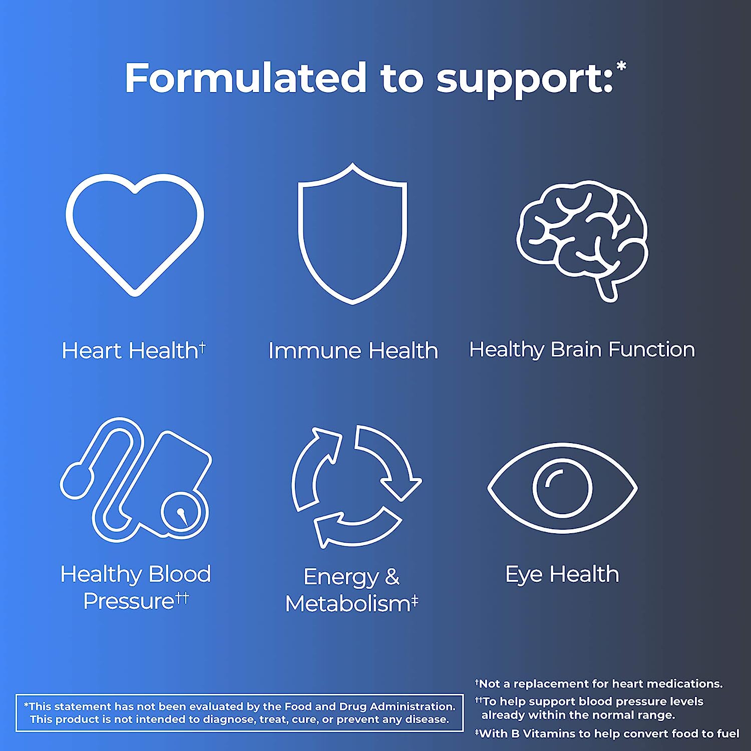 4 >Formulated to support: heart health, healthy blood pressure, immune health, eye health, and physical energy by helping convert food to fuel