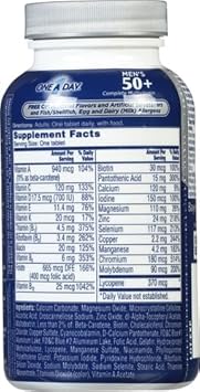 One A Day Men'S 50+ Healthy Advantage Multivitamins Offer 100% Or More Of The Daily Value Of At Least 15 Key Nutrients In A Single Tablet. One A Day Men'S 50+ Healthy Advantage Is Designed To Address Health Concerns Of Men As They Age. This Daily Multivitamin Contains Vitamins A, C, And E, Zinc, Selenium, Copper And Manganese To Support Cell Health.* One A Day Men'S 50+ Healthy Advantage Is Formulated To Support:* Cell Health, Heart Health, Healthy Blood Pressure**, Immune Health, Physical Energy* By Helping Convert Food To Fuel, And Eye Health.* One A Day Men'S 50+ Healthy Advantage Multivitamin Is Free Of Gluten, Wheat, Dairy, Artificial Flavors, And Artificial Sweeteners. Men Over The Age Of 50 Should Take One Tablet Daily With Food. One A Day Multivitamins Provide Nutritional Support That You And Your Family May Need At Any Life Stage. Not A Replacement For Heart Medications. **To Help Support Blood Pressure Levels Already Within The Normal Range *This Statement Has Not Been Evaluated By The Food And Drug Administration. This Product Is Not Intended To Diagnose, Treat, Cure, Or Prevent Any Disease