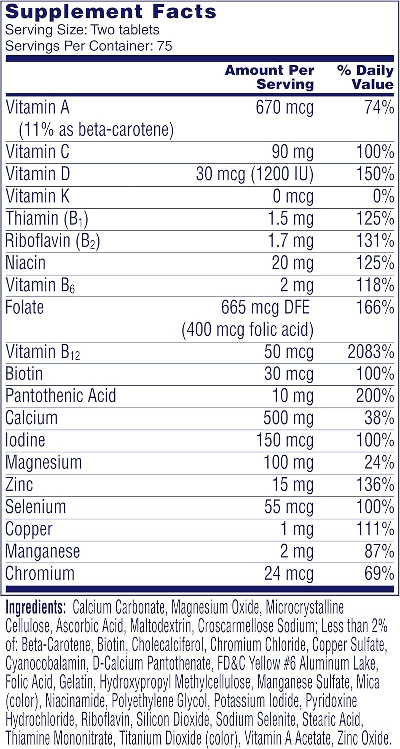 One A Day Proactive 65+ Offers A Wide Variety Of Key Nutrients In Two Convenient Easy To Take Tablets. One A Day Proactive 65+ Is A Complete Multivitamin Specially Formulated For Men And Women 65 Years Or Older That Contains Key Nutrients Important For This Age. This Daily Multivitamin Contains Key Nutrients Like Vitamins A, B6, B12, C, And D, Riboflavin, Thiamin, Niacin, Folic Acid, Biotin, Pantothenic Acid, Iodine, Magnesium, Selenium, Copper, Chromium, Calcium, Zinc, And Manganese. One A Day Proactive 65+ Is Formulated To Support Cell Health, Heart Health(1), Healthy Blood Pressure(2), Bone Health, And Physical Energy By Helping Convert Food To Fuel.* Adults Over 65 Should Take Two Tablets Daily, With Food. One A Day Multivitamins Can Provide Nutritional Support That You And Your Family May Need At Every Life Stage. (1) Not A Replacement For Heart Medications. (2) To Help Support Blood Pressure Levels Already Within The Normal Range. *This Statement Has Not Been Evaluated By The Food And Drug Administration. This Product Is Not Intended To Diagnose, Treat, Cure, Or Prevent Any Disease