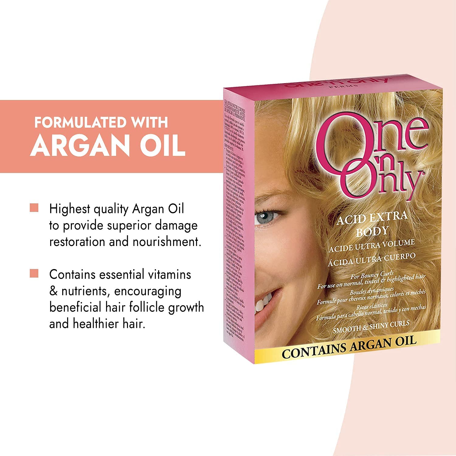 One 'N Only Acid Extra Body Perm With Argan Oil For Bouncy Curls, Leaves Hair Manageable, Firm And Even Curls, Great For Normal, Tinted, And Frosted Hair, Processing Without Dryness Or Frizziness