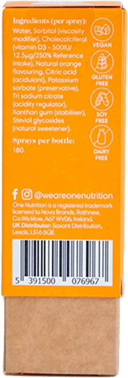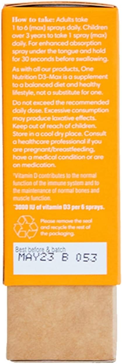 One Nutrition D3 Max - Vitamin D Supplements - Plant Based, Supports Bone Health And Immune System - Fast Absorption - Oral Spray - 500Iu Per Spray - 180 Sprays