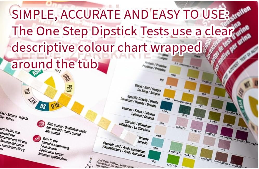 One Step: 11 Parameter Urine Test Strips Ascorbic Acid, Uti Infection, Blood, Glucose Testing Sticks