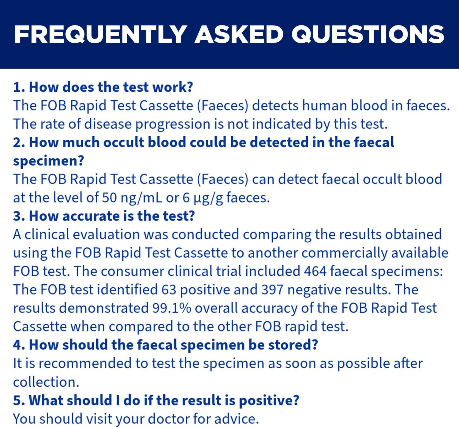 One Step Bowel Test, 1 Test Pack, Colon Faecal Screening Test Kit, Occult Blood In Stools Home Testing, Fob Detection, Ulcers, Polyps, Colitis, Cancer Screen