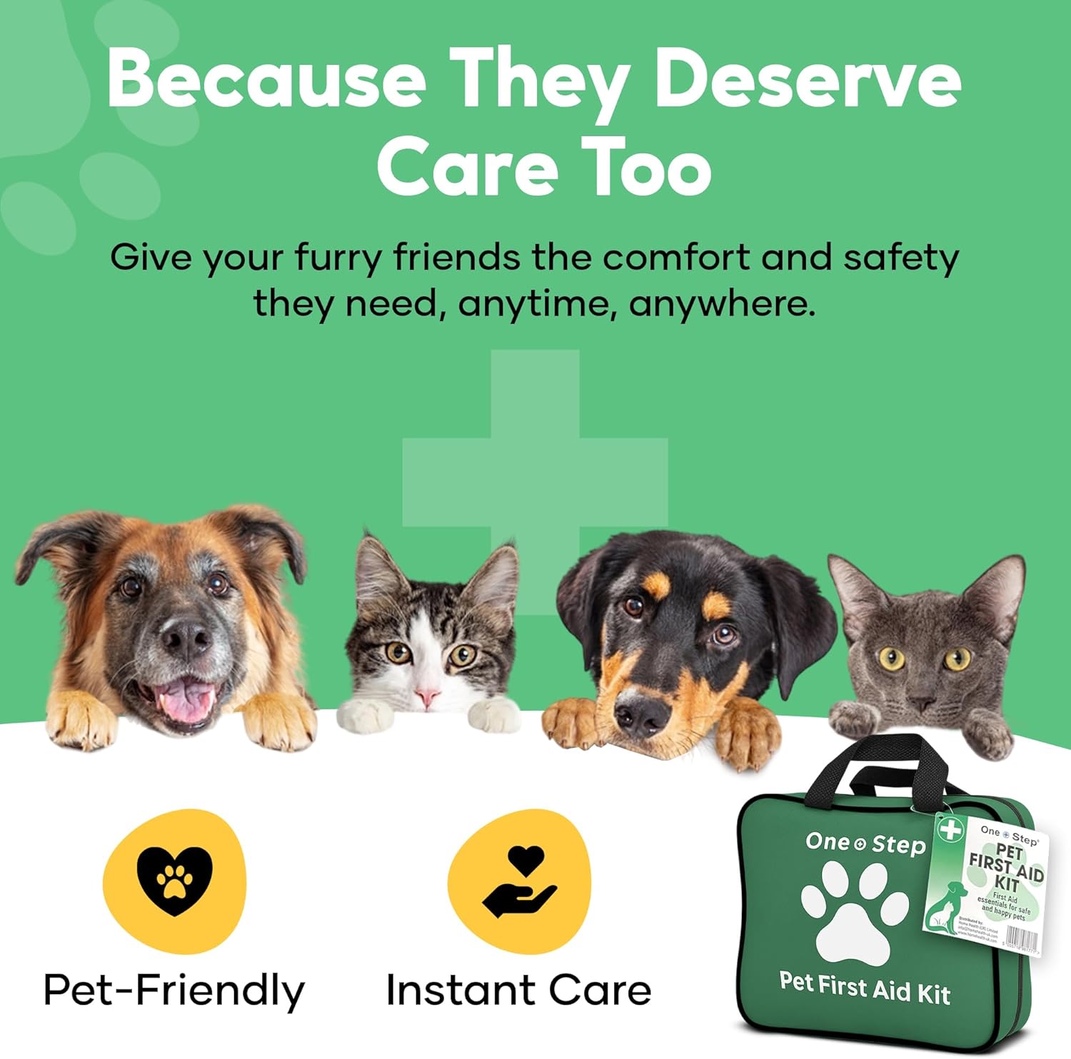 One Step Pet First Aid Kit, Includes Over 80+ Premium Items, Tick Remover, Syringe, Vet Wrap, Bandages, Wipes, Travel Sized First Aid For Dogs, Cats And All Other Pets - Pet Supplies