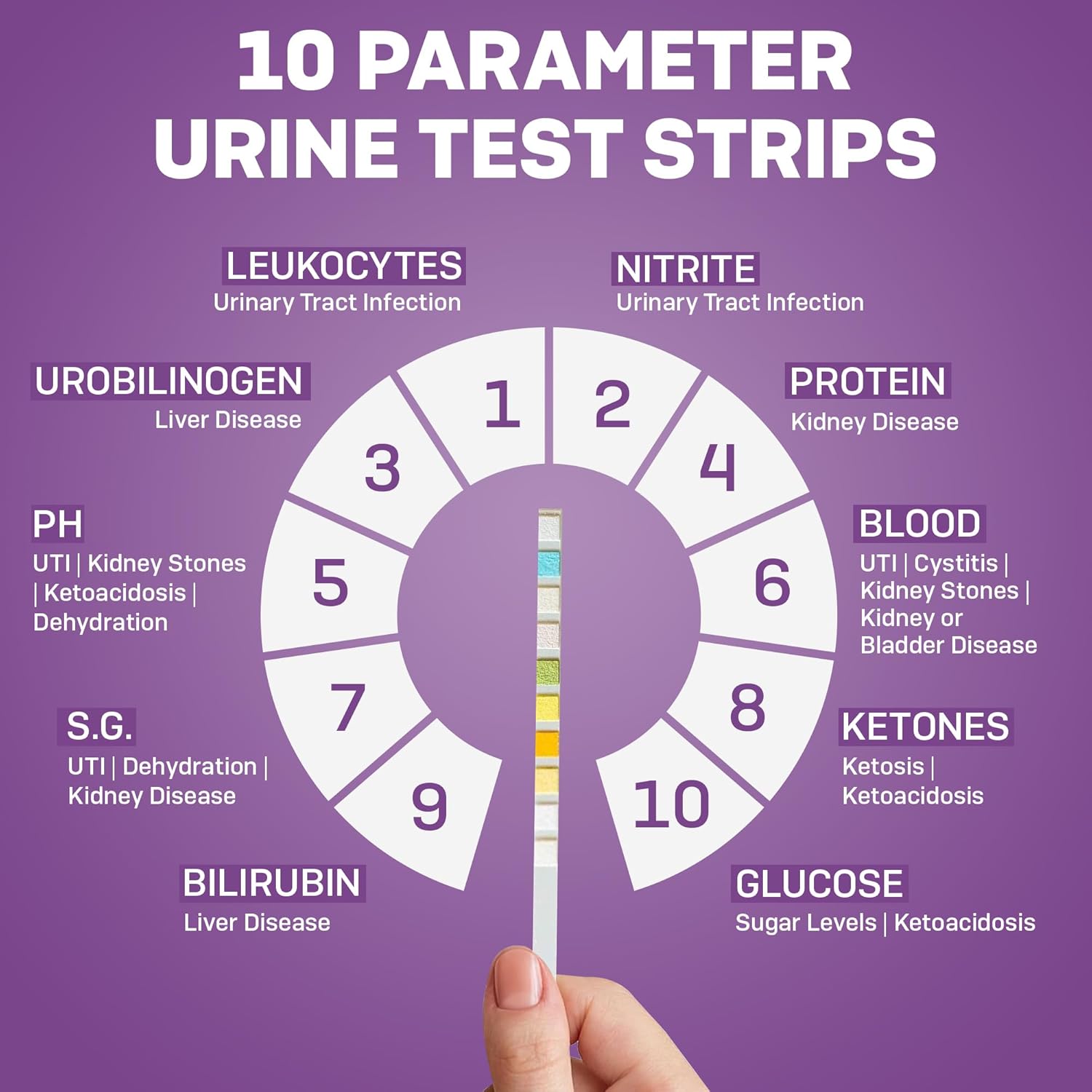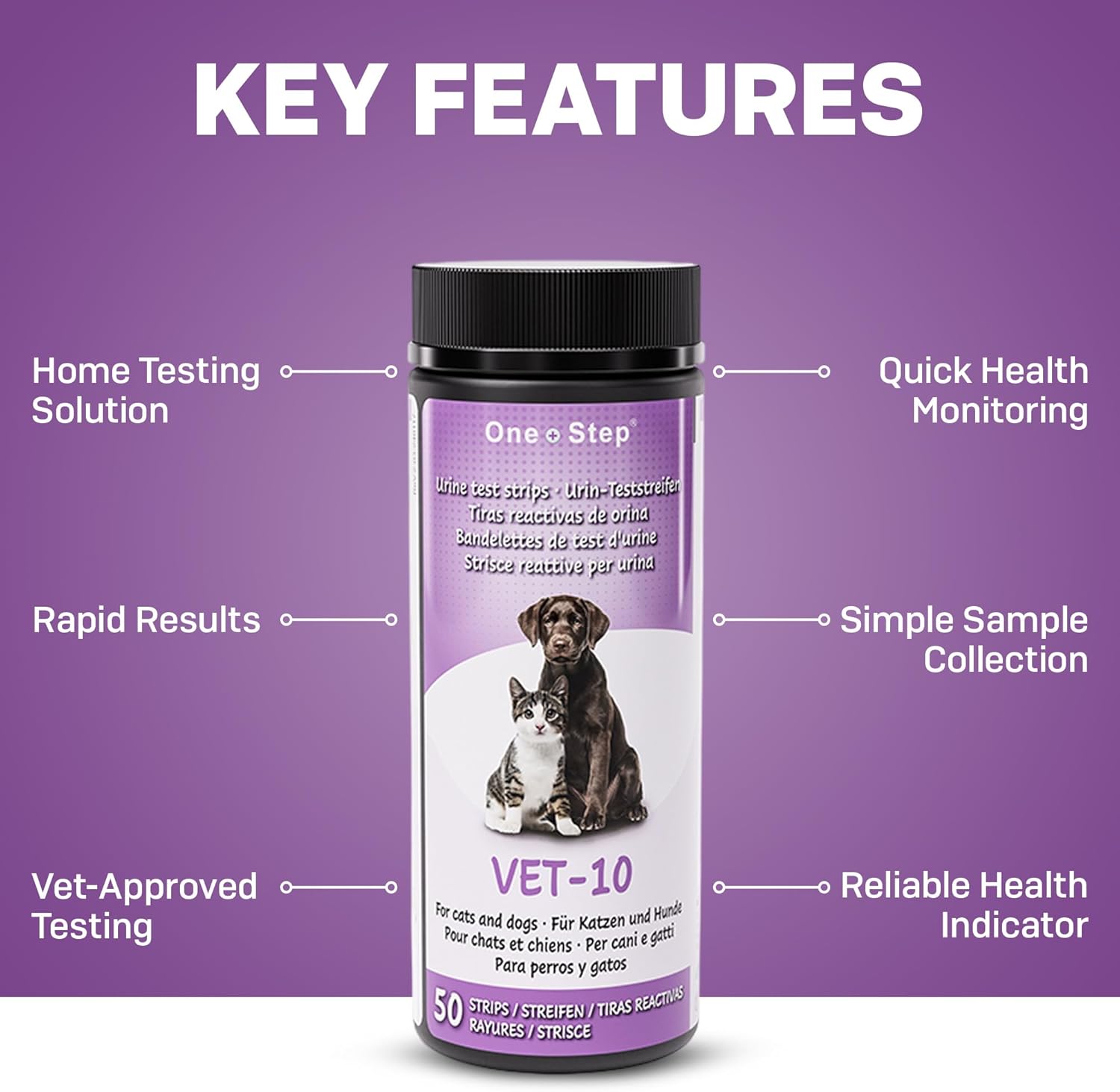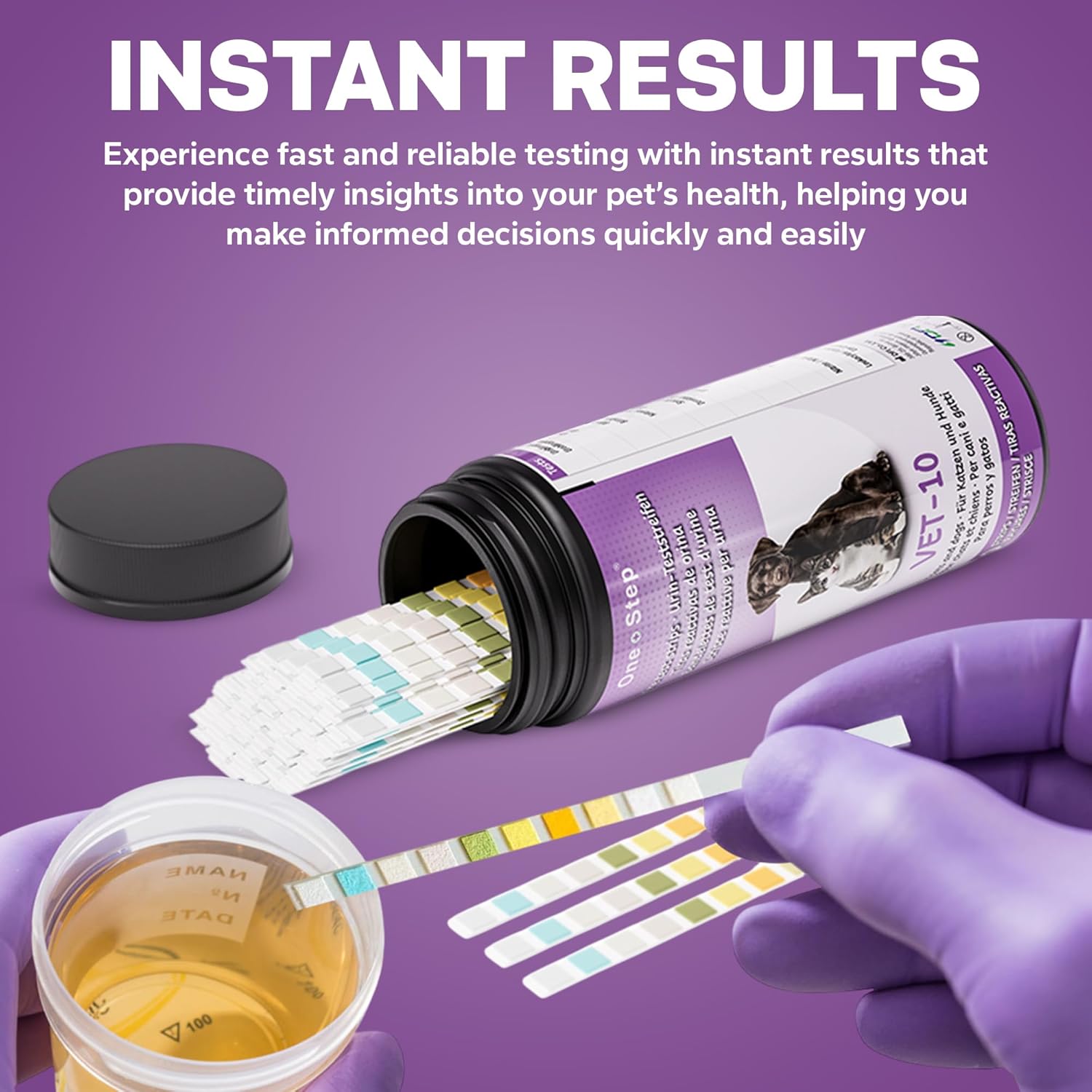 One Step Pet Urine Testing Strips, 50 X Urinalysis Parameter Tests For Dogs, Cats, Vets, Accurate Testing For Veterinarians, Detects Uti, Diabetes, Bladder, Kidney, Liver, Sg, Ph, Glucose