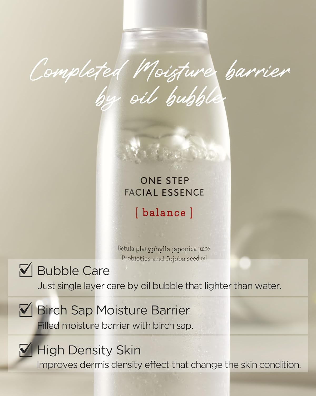 Onestep Facial Essence - Bi-Phase Hydrating Korean Toner With Birch Sap And Probiotics - Water And Oil Essence, 3.9 Fl.Oz