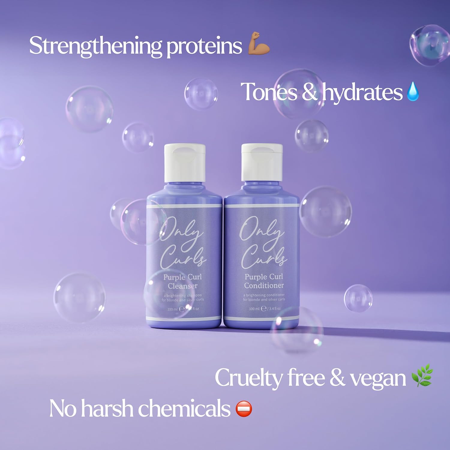 Only Curls Purple Curl Cleansing Bundle, 300ml x2, Curly Hair Products, Purple Shampoo & Conditioner, Neutralise Brassiness, Strengthen & Moisturise, Brighten Blonde Hair, For All Curly Hair Types