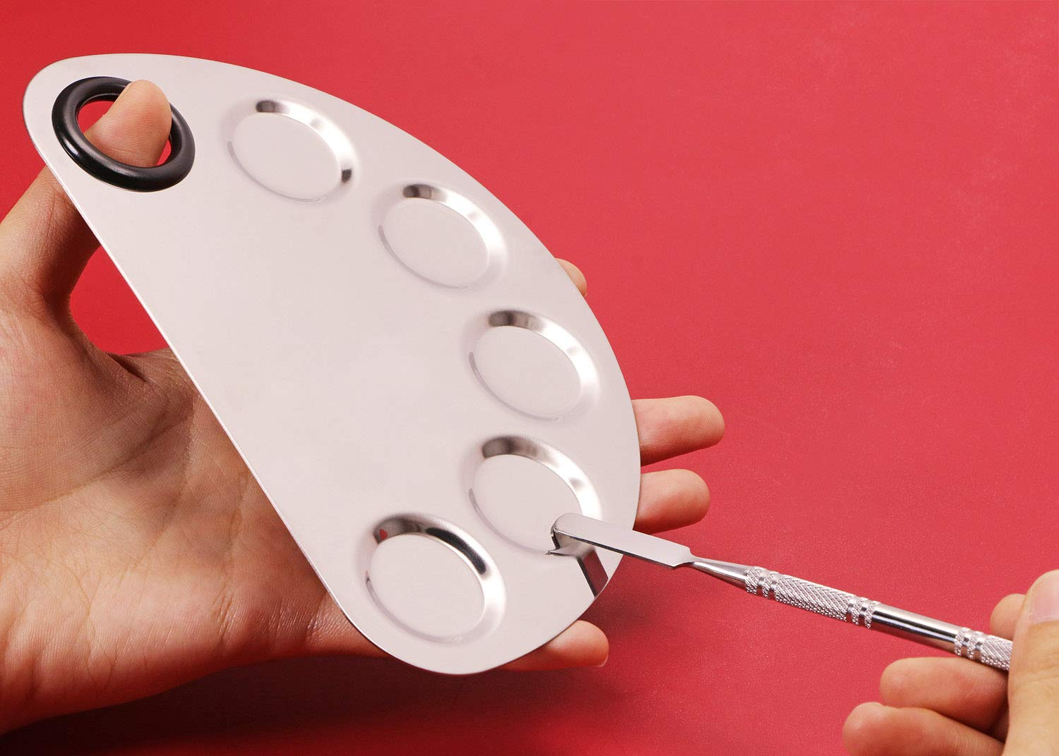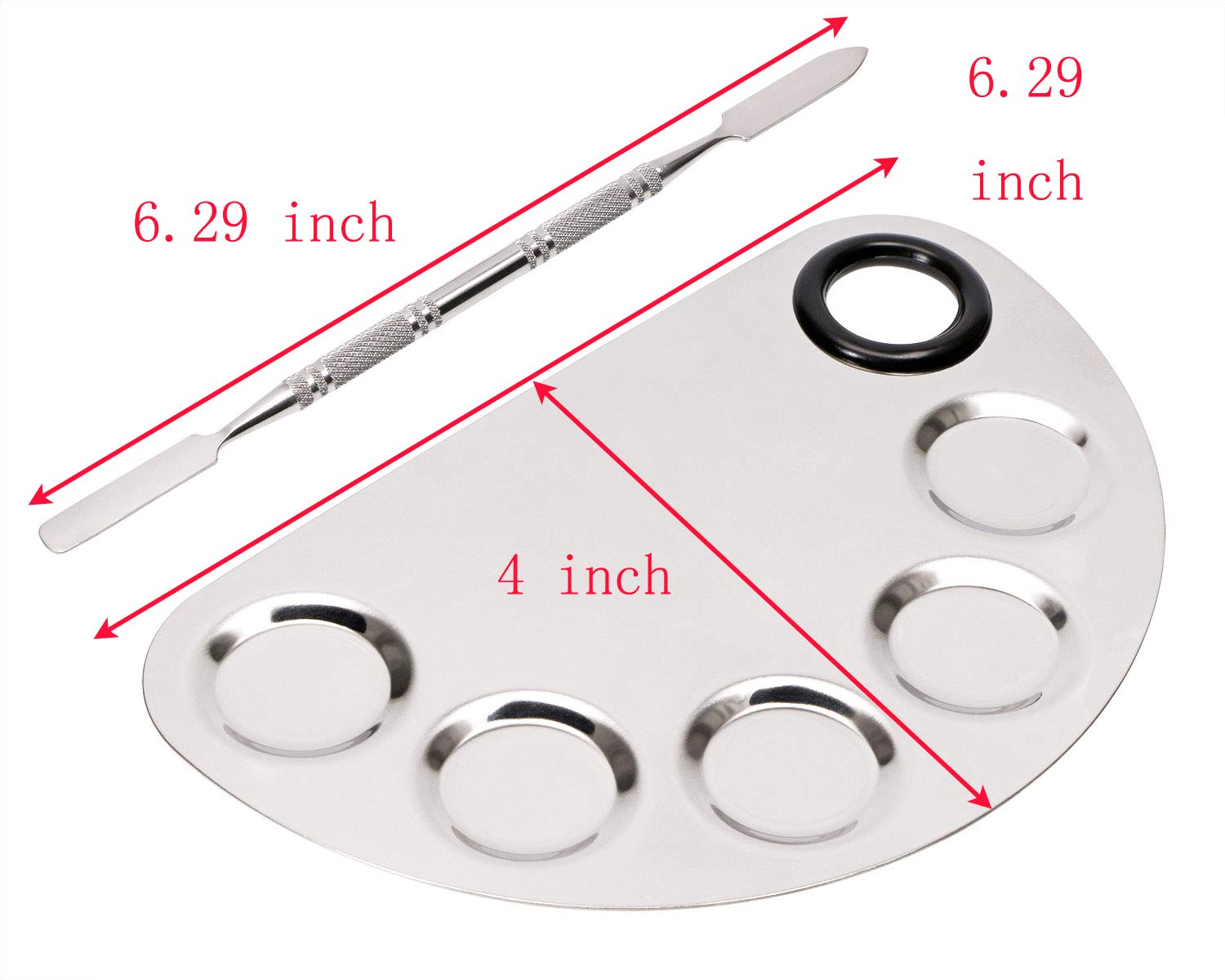 ABOUT THE PRODUCT: 1 > Material: The makeup spatula is made of high quality stainless steel, which is durable and easy to clean. The palette is made of stainless steel. They are solid, not easy to break 2 > Function: The palette is excellent for mixing foundation, such as blending lip colors, eye shadow, concealers, foundations, pigment colors. Also can use for nail art. Mixing palette would be a very nice tool for makeup lovers and makeup learners 3 > 2-ended spatula help get the product out of the container, more easily and sanitary, as well as avoid wasteProduct name: Makeup Palette and Spatula******** Package Included:******** 1 pieces Makeup Palette******** 1 pieces Spatula**************** FEATURES: ******** * 100% brand new and high quality******** * Widely used for Makeup, Personal Care, Beauty etc******** * Made from high quality material, well made and reliable**************** NOTE: ******** Due to lighting effects, monitor's brightness, contrast settings etc, there could be some slight differences in the color tone of the pictures and the actual item.******** Please allow 1-2mm differs due to manual measurement.******** Check the detailed size of the Makeup Palette and Spatula if it fits your requirement before your purchase. Thank you.******** ONLYKXY THANK YOU for your coming, please do not hesitate to email us for any questions