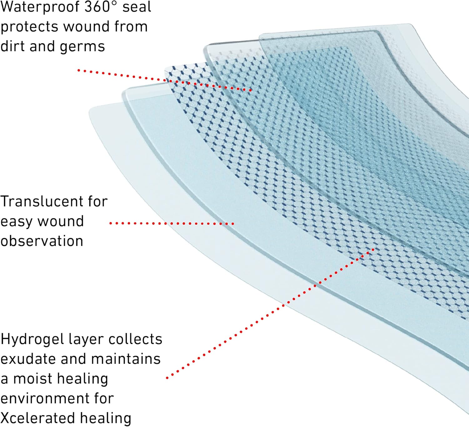 SOOTHING, COOLING: Hydrogel layer hydration system offers a soothing and cooling action while collecting light exudate from wounds and maintaining an appropriately moist healing environment