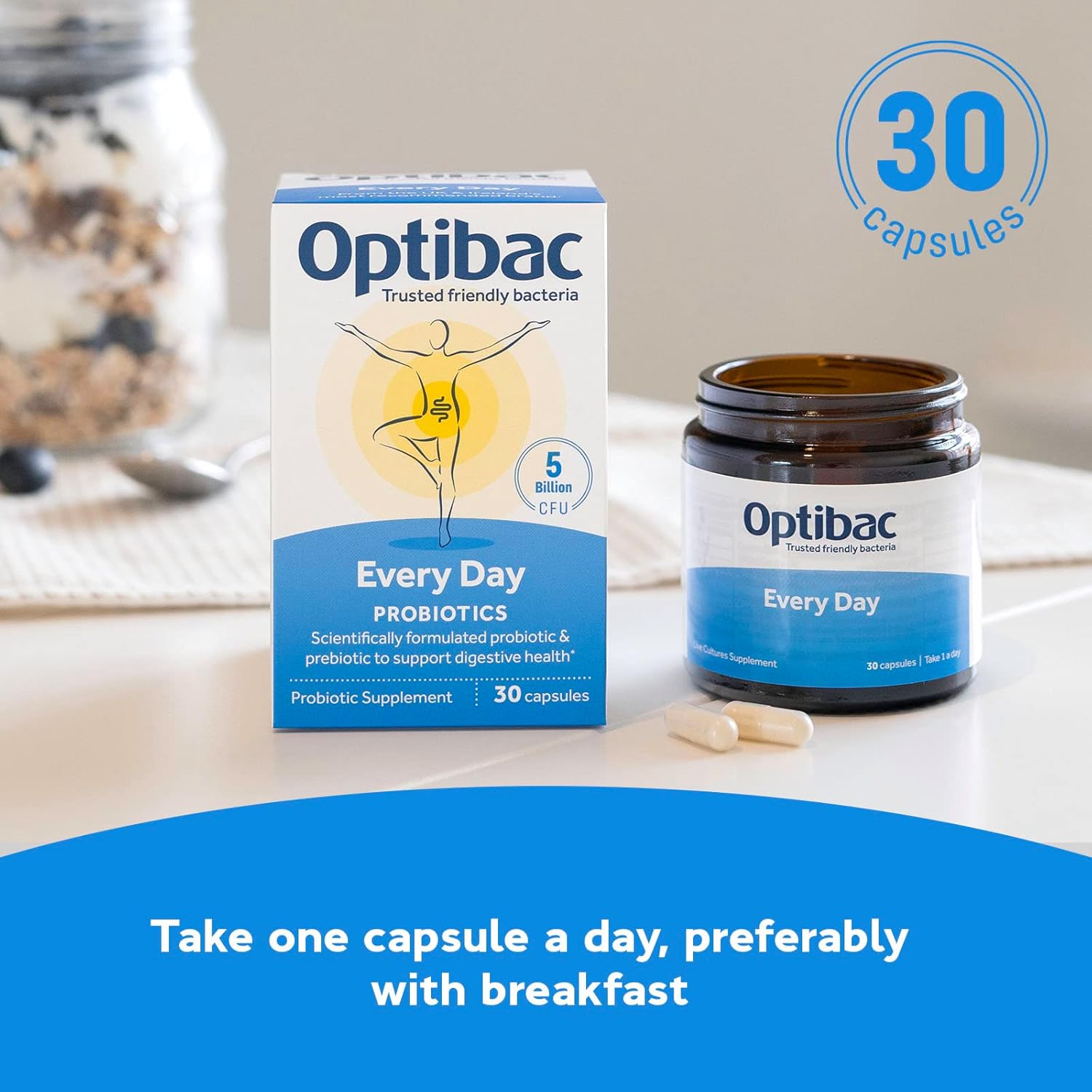 Optibac Probiotics For Every Day - Vegetarian Probiotic Supplement For Digestion & Gut Health, 5 Billion Cfu & Prebiotic - 30 Capsules