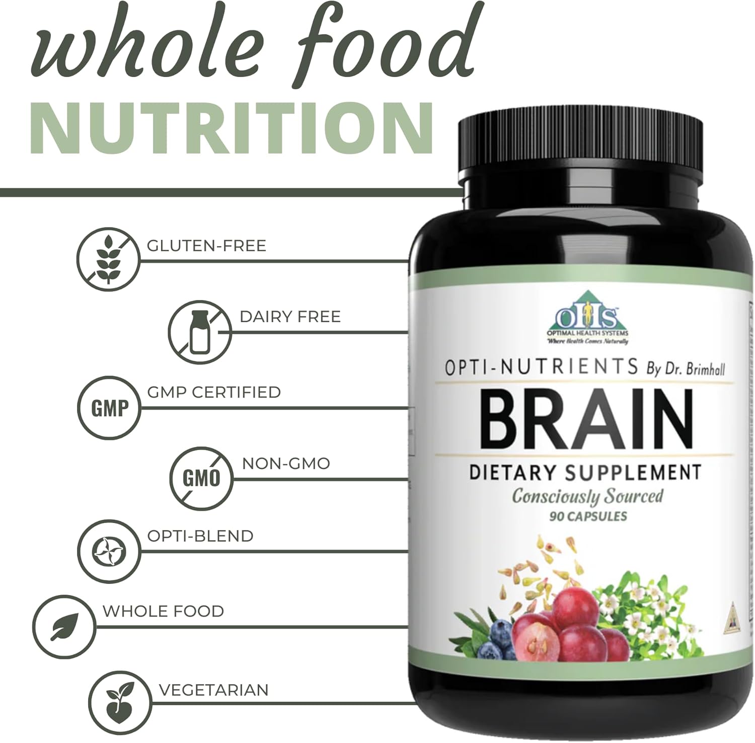 Optimal Health Systems Brain | Most Comprehensive Nootropic + Enzyme Delivery | 700 Mg Scientific Neuroenhancment Blend | Boost Mood, Memory & Focus | 90 Capsules