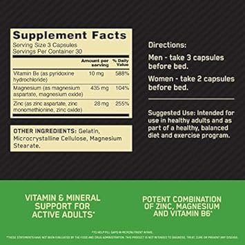 Product Description Support Your Immune System And Overall Health With Optimum Nutrition Zinc Magnesium Aspartate Supplement Specially Formulated For Active Adults. This Daily Supplement Contains A Blend Of Zinc, Magnesium And Vitamin B6 To Fill In Gaps In Micronutrient Intake, Particularly For Those With An Active Lifestyle. Optimum Nutrition Zinc Magnesium Aspartate Contains Zinc, Magnesium And Vitamin B6 To Support The Breakdown And Transport Of Nutrients And Help Convert Food Into Cellular Energy And Help Provide Immune Support. Each Bottle Contains 90 Magnesium Supplement Tablets To Provide The Nutrients Active Adults Need In A 30-Day Supply. Take One 3 Tablet-Serving Daily At One Meal, Or Spread Across Meals Throughout The Day. ThereāS More Of You In You. Optimum Nutrition Has Been Trusted To Provide High Quality In Post-Workout Recovery, Pre-Workout Energy, And On-The-Go Sports Nutrition For Over 35 Years And In 90+ Countries. Amazon.Com =