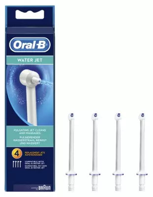 Oral-B Water Jet 4 Replacement Jets Are Replacement Jets For The Oral-B Waterjet. The Waterjet Technology Helps To Quickly And Gently Eliminate Food Residue Between Teeth While Stimulating And Massaging The Gums. The Single-Jet Position Of The Tip Allows The Cleaning Of Teeth And Inter-Dental Spaces And To Eliminate Residual Food Residues. The Multi-Jet Position Of The Tip Helps Massage The Gums To Help Preserve Their Good Health