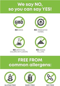 CLEAN INGREDIENTS - Made without artificial flavors, colors, excipients, or stearates using verified Non-GMO ingredients. Free of gluten, dairy, and soy allergens