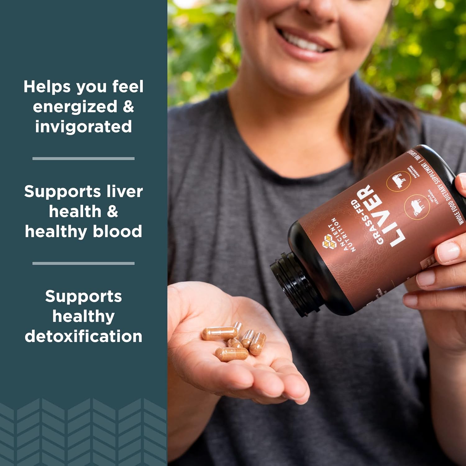 Organ Supplements By Ancient Nutrition, Grass-Fed And Wild Organ Complex Capsules, Beef & Lamb Liver, Supports Healthy Blood, Gut, And Liver, 180 Ct