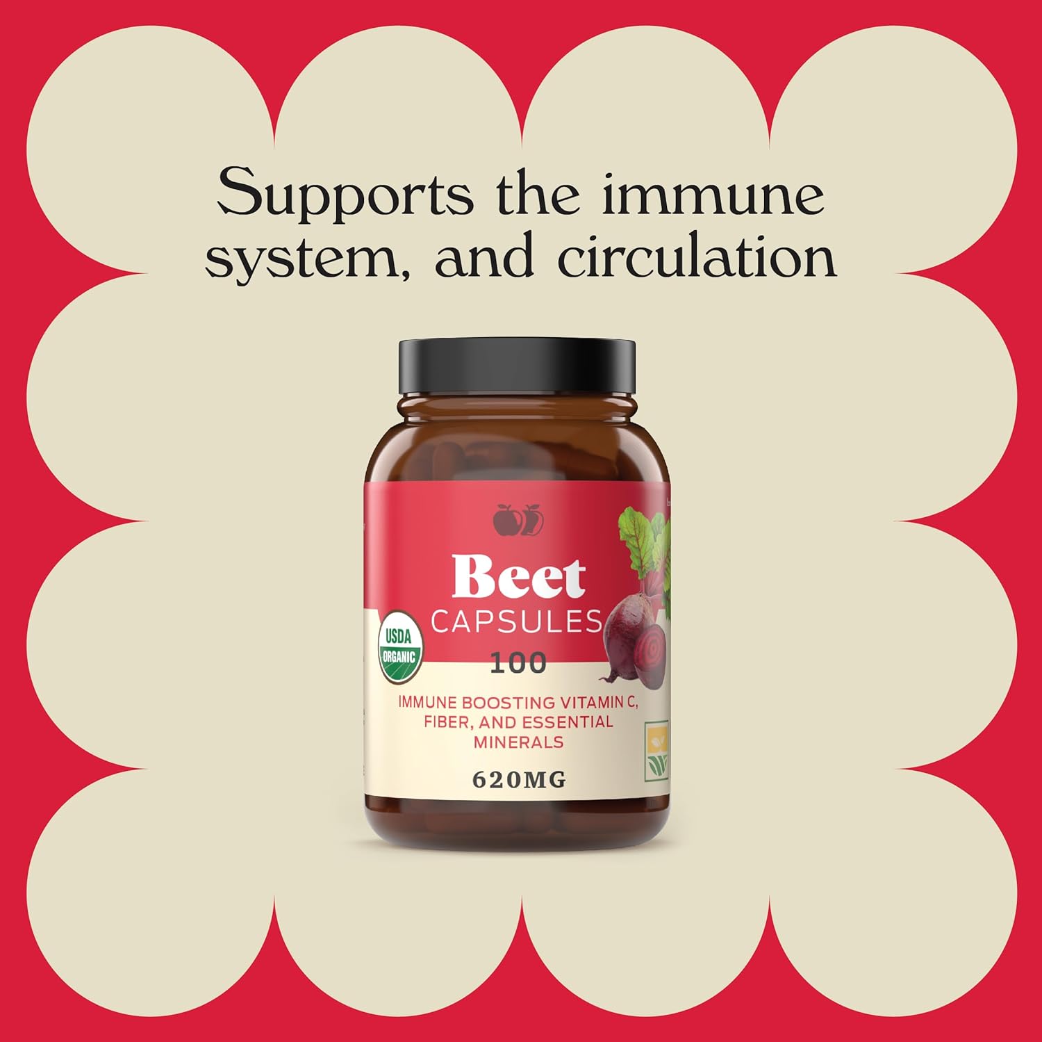 Organic Beet Root Capsules - Made in The USA, Naturally Boost Energy, Stamina, & Nitric Oxide with a Pure Organic Beet Root Supplement