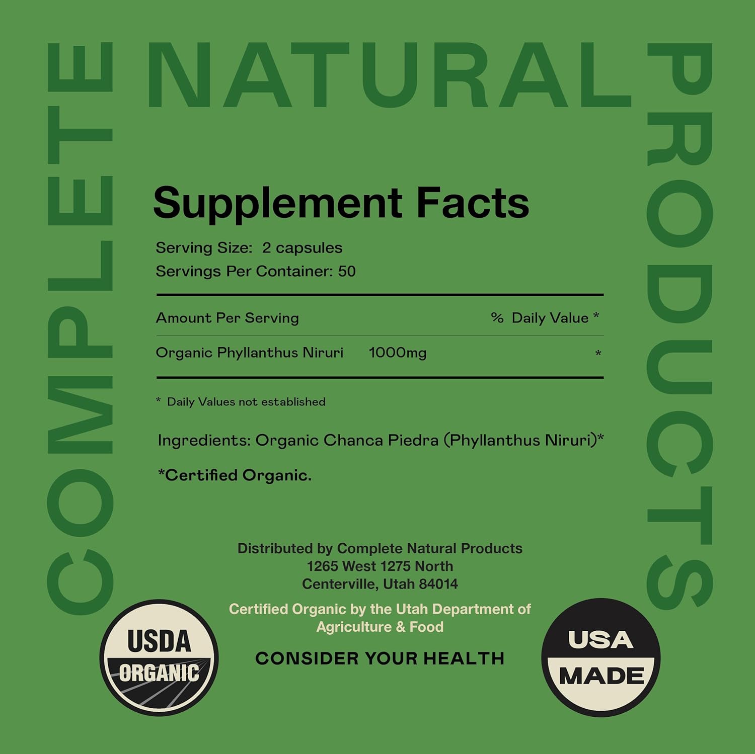 About this item ORGANIC VEGGIE CAPSULES : Our organic Chanca Piedra is just that. Pure, Organic, and Natural. There are absolutely no fillers added to our mixture of pure Phyllanthus Niruri. We personally take the Chanca Piedra Powder and capsule it and make sure you are getting the best Chanca Piedra Extract so you can break down sludge, debris, and stones. ALL NATURAL & ORGANIC: This pure and steam distilled concentration is without the use of harmful alcohols or synthetic ingredients. We also use a natural veggie capsules to make sure you are getting the highest concentrate of Lab Grade, Organic and Pure Chanca Piedra or Phyllanthus Niruri. SUPPORTS KIDNEY & GALLBLADDER HEALTH : Helps support your body and Phyllanthus Niruri is widely known for its ability to help regulate kidney and gallbladder health as well as maintain regular liver health. MANAGES CALCIUM LEVELS IN THE URINE: Chanca Piedra is an Amazonian superherb whose name translates to âstone breakerâ in Quechua and Spanish, due to its traditional use of breaking up calcium deposits in the body. CLEANSE & DETOX: Organic Chanca Piedra Capsules help maintain optimal kidney, gallbladder, and liver health and has a powerful detoxifying and balancing effect for the urinary and digestive tract system. › See more product details,ORGANIC VEGGIE CAPSULES : Our organic Chanca Piedra is just that. Pure, Organic, and Natural. There are absolutely no fillers added to our mixture of pure Phyllanthus Niruri. We personally take the Chanca Piedra Powder and capsule it and make sure you are getting the best Chanca Piedra Extract so you can break down sludge, debris, and stones,ALL NATURAL & ORGANIC: This pure and steam distilled concentration is without the use of harmful alcohols or synthetic ingredients. We also use a natural veggie capsules to make sure you are getting the highest concentrate of Lab Grade, Organic and Pure Chanca Piedra or Phyllanthus Niruri,SUPPORTS KIDNEY & GALLBLADDER HEALTH : Helps support your body and Phyllanthus Niruri is widely known for its ability to help regulate kidney and gallbladder health as well as maintain regular liver health,MANAGES CALCIUM LEVELS IN THE URINE: Chanca Piedra is an Amazonian superherb whose name translates to âstone breakerâ in Quechua and Spanish, due to its traditional use of breaking up calcium deposits in the body,CLEANSE & DETOX: Organic Chanca Piedra Capsules help maintain optimal kidney, gallbladder, and liver health and has a powerful detoxifying and balancing effect for the urinary and digestive tract system