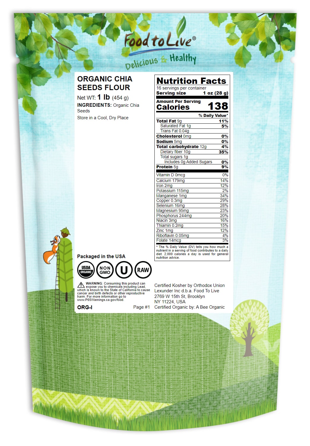 Organic Chia Seeds Flour- Non-Gmo Meal, Kosher, Raw Chia Powder, Vegan Ground Seeds, Cold Milled Meal, Bulk โ By Food To Live