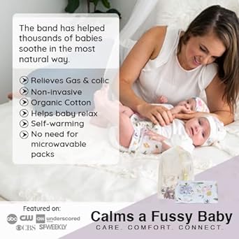 SOOTHING WARMTH on the belly is an all-natural, external way to comfort and soothe your baby10SELF-WARMING - 100% PREMIUM ORGANIC COTTON front & back lined with warm polyester fleece heats the band using the baby’s own body temperature. The baby soft touch fastener adjusts to apply the optimal amount of compression on the tummy to help soothe. NO costly or microwavable heating packets. NO gas drops or medicines. NO invasive inserting of a lubricated tube10RECOMMENDED & AWARD WINNING. The band has received the prestigious Baby Maternity Magazine Top Choice Award (2020) Mom’s Choice Award (2019), National Parenting Product Award (2021), and LA Baby Show Best in Show (2018) honorable mention. This band is recommended by doctors, nurses, lactation consultants, sleep consultants and parents10BUY ONCE, USE FOREVER. It’s non-slip band and adjustable touch fastener is sized to grow with your newborn to 12-month-old baby. It can be worn any time (while monitored) and is best used after giving baby a bath to keep belly protected, warm and comfy. Organic cotton lasts 5x longer than treated fabrics, so it can be used for future babies10SAFE, STYLISH & EFFECTIVE. Our mission is to help parents snuggle & soothe their babies to enhance the love and connection between parent and child. We care about offering safe, trendy, and functional baby wear. That's why we choose the finest 100% premium GOTS-certified organic cotton material. We also use 100% organic water-based dyes for all our exclusive prints