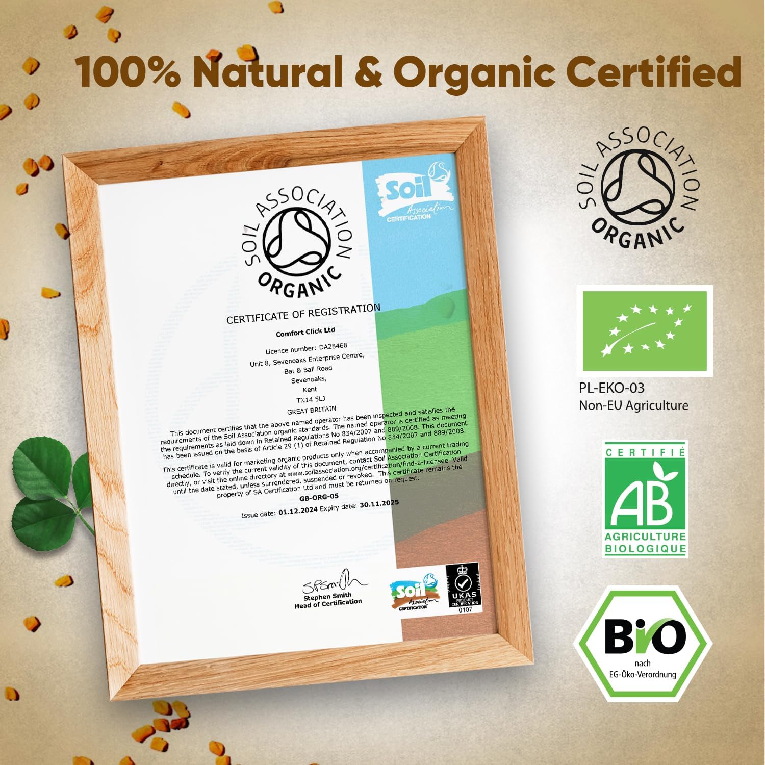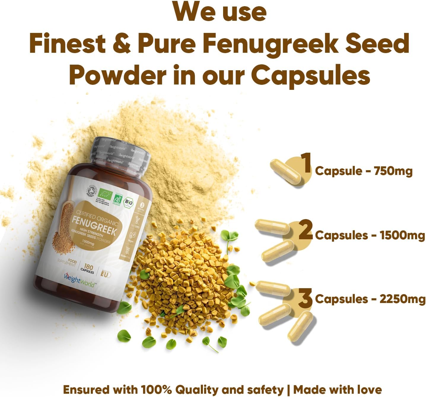 Organic Fenugreek Capsules - 2250Mg Per 3 Capsules - 180 Pills - 100% Pure Fenugreek Powder - Soil Association Certified - Rich In Vitamins & Calcium - Vegan Fenugreek Supplement For Women & Men