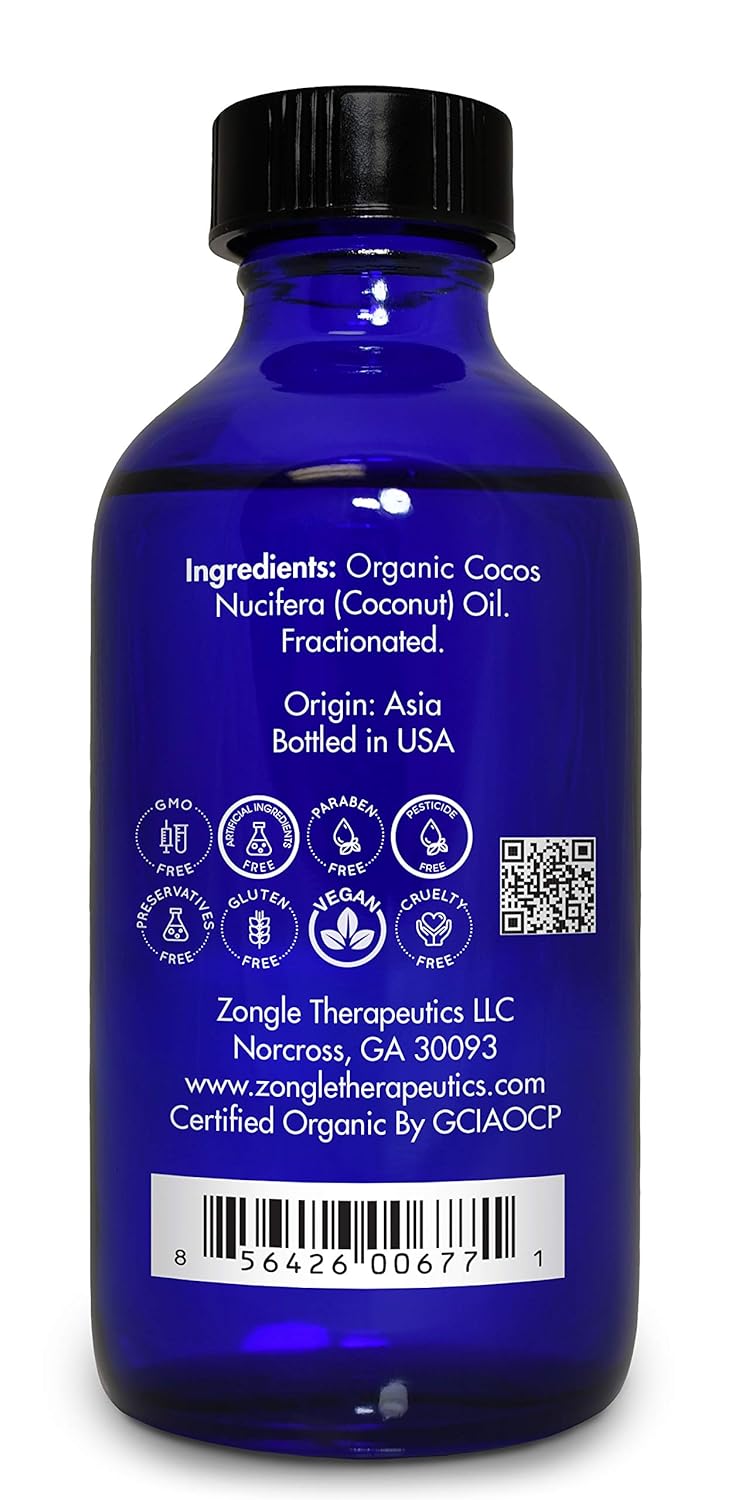 Organic Fractionated Coconut Oil By Zongle, 4 Oz β 100% Pure Natural, Usda Certified, Therapeutic Grade
