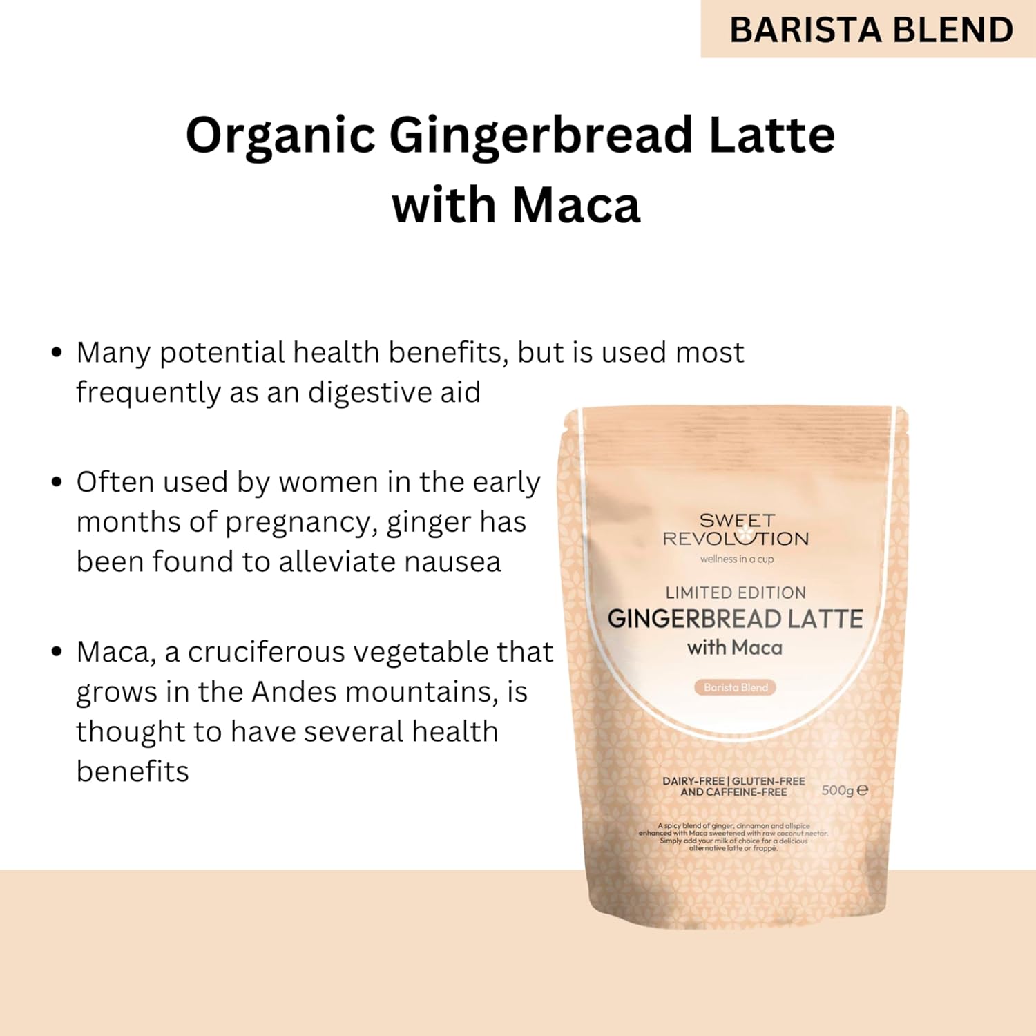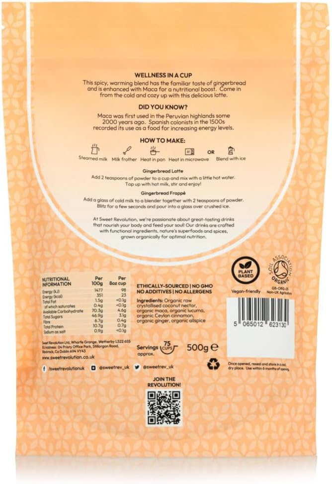 Organic Gingerbread Latte With Maca Barista Blend (1 X 500G) Catering Pack. Caffeine Free, Gluten Free, Dairy Free, Refined Sugar-Free